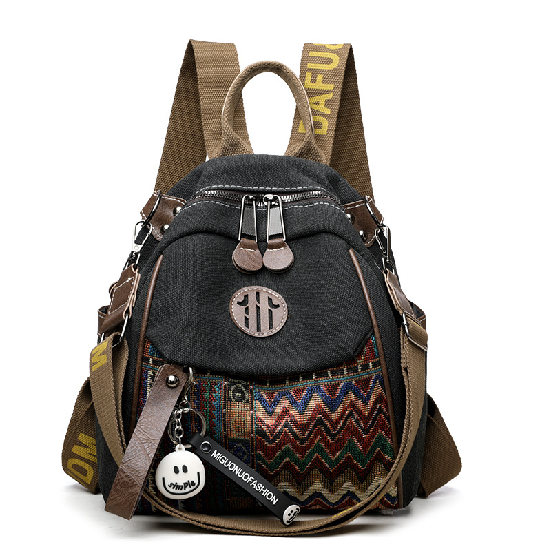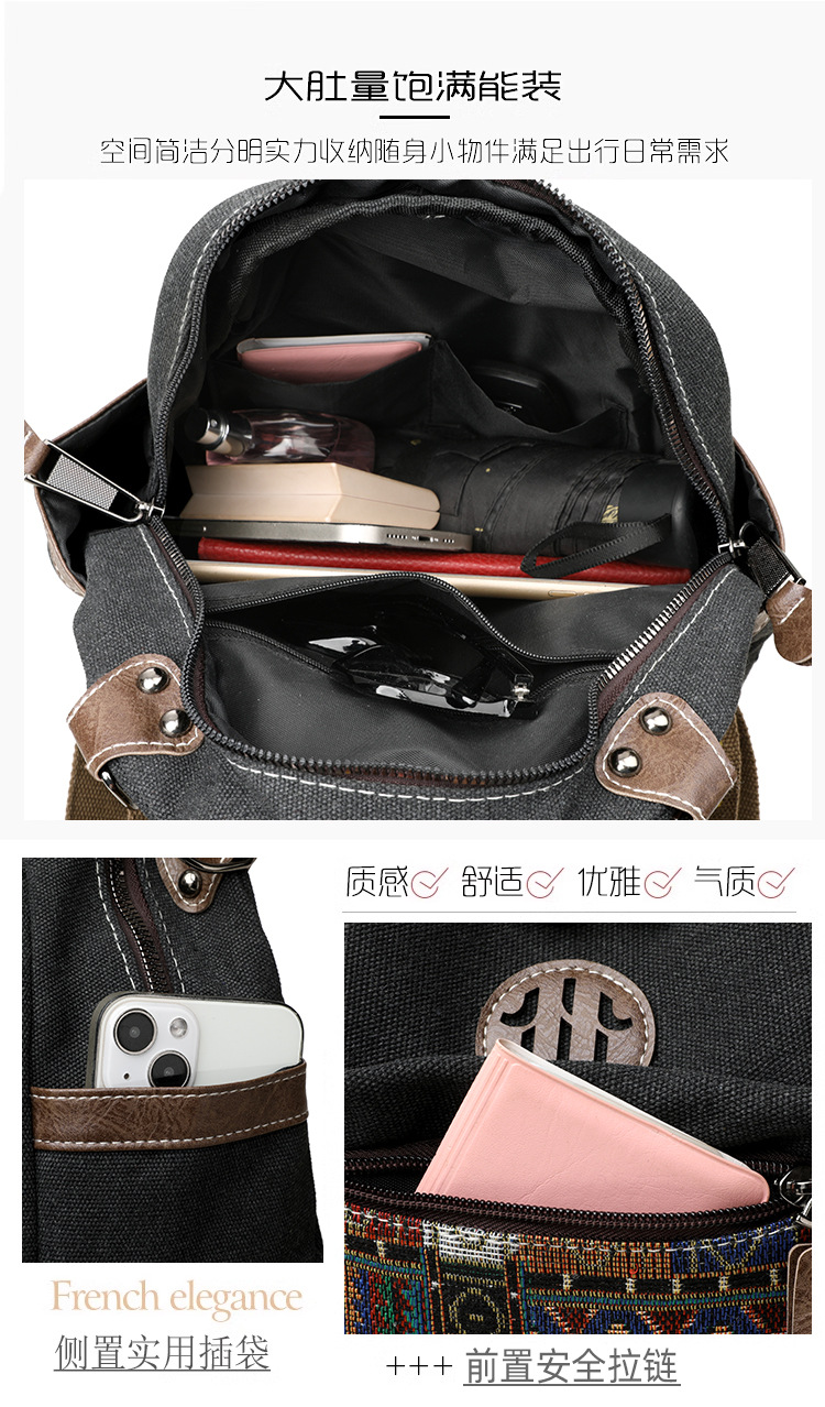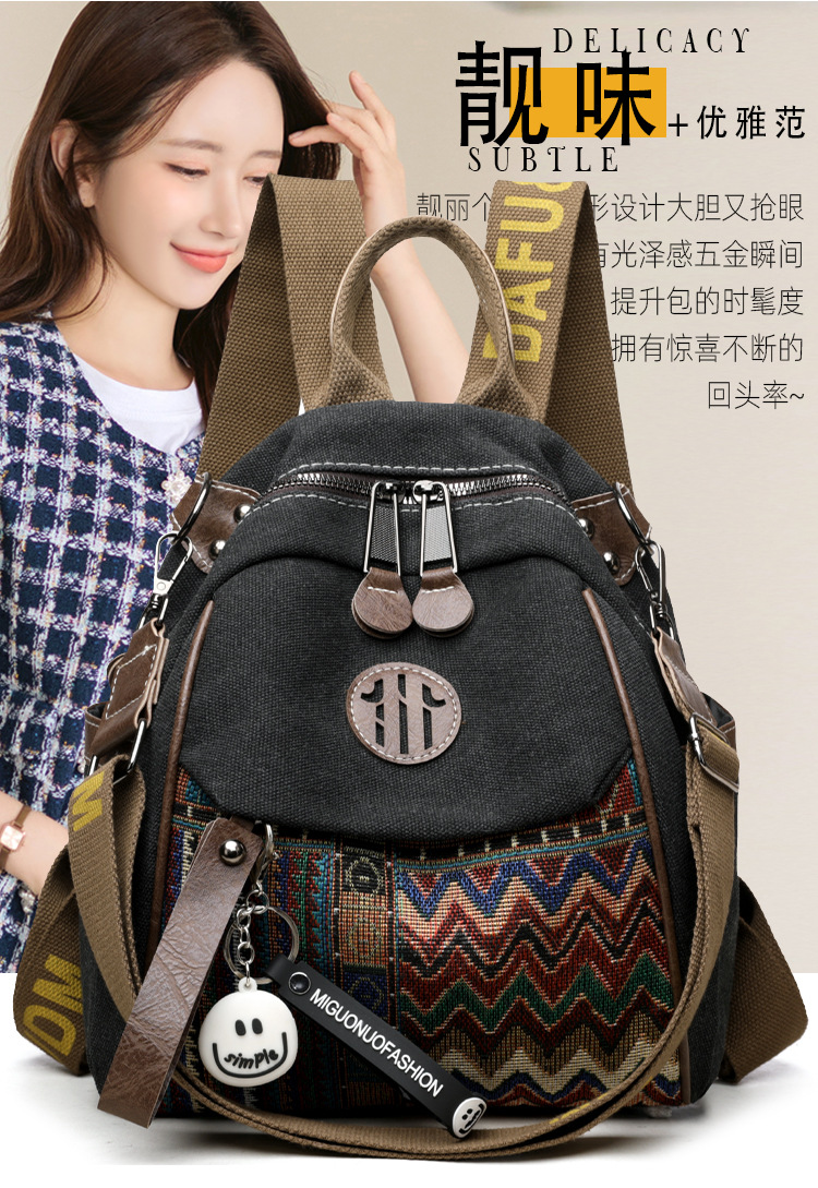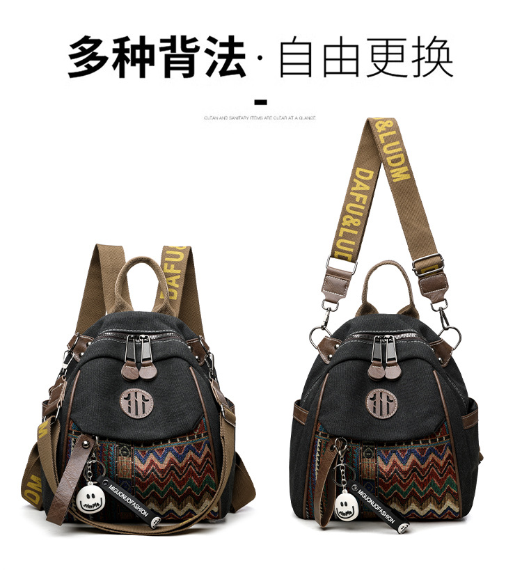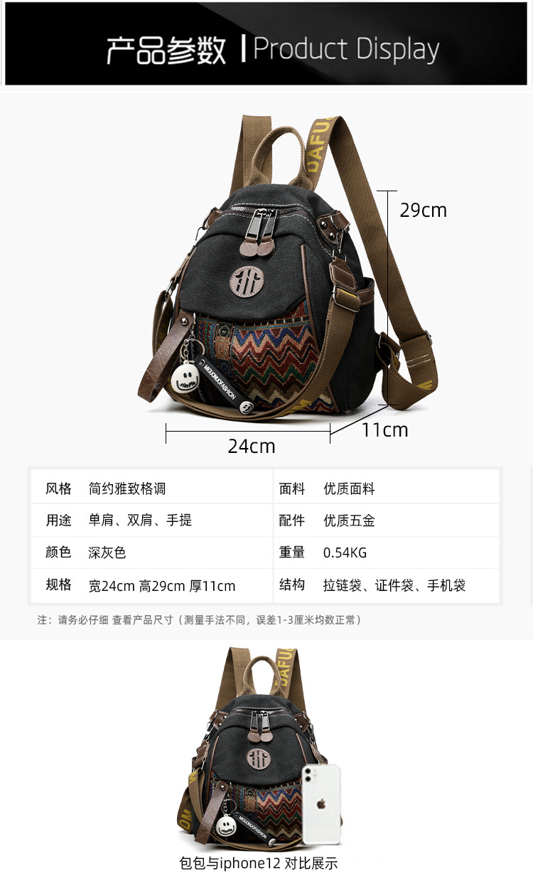 高级牛仔布民族风刺绣双肩包女2025新款撞色大容量背包多用斜挎包 投诉