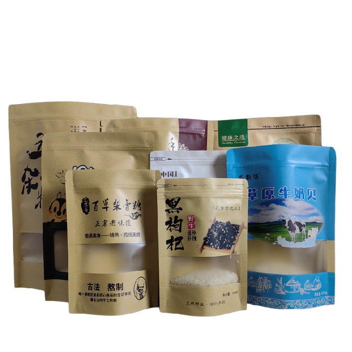 开窗牛皮纸袋自立袋休闲食品包装袋茶叶干果牛皮纸自封袋印刷定制 English | 投诉