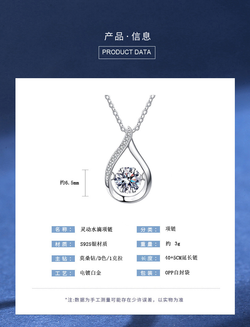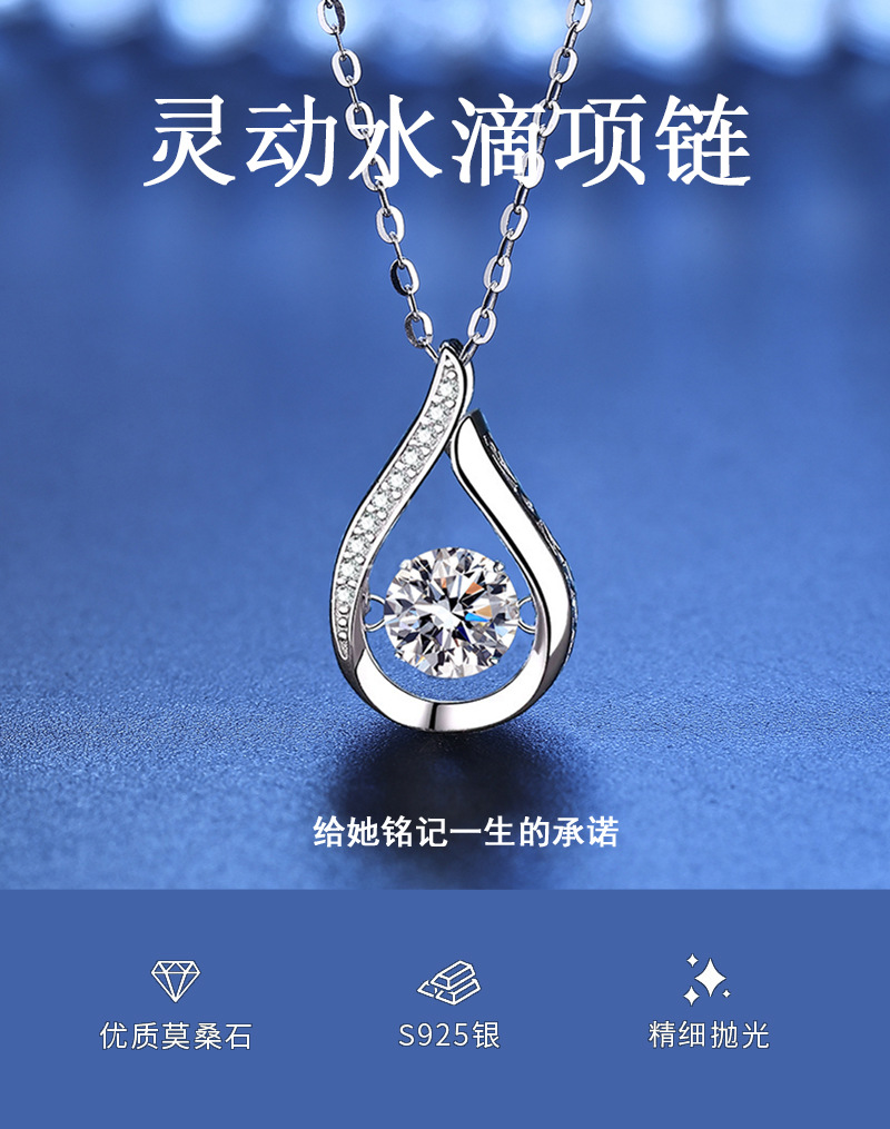 灵动水滴莫桑石项链女一克拉韩版锁骨链吊坠纯银项链厂家饰品批发 English | 投诉
