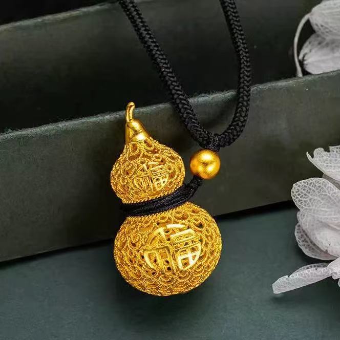 沙金饰品镂空福禄葫芦吊坠项链女轻奢高级感葫芦挂坠项坠饰品批发 English | 投诉