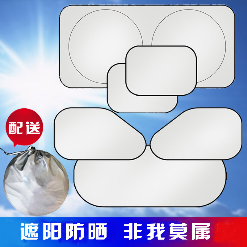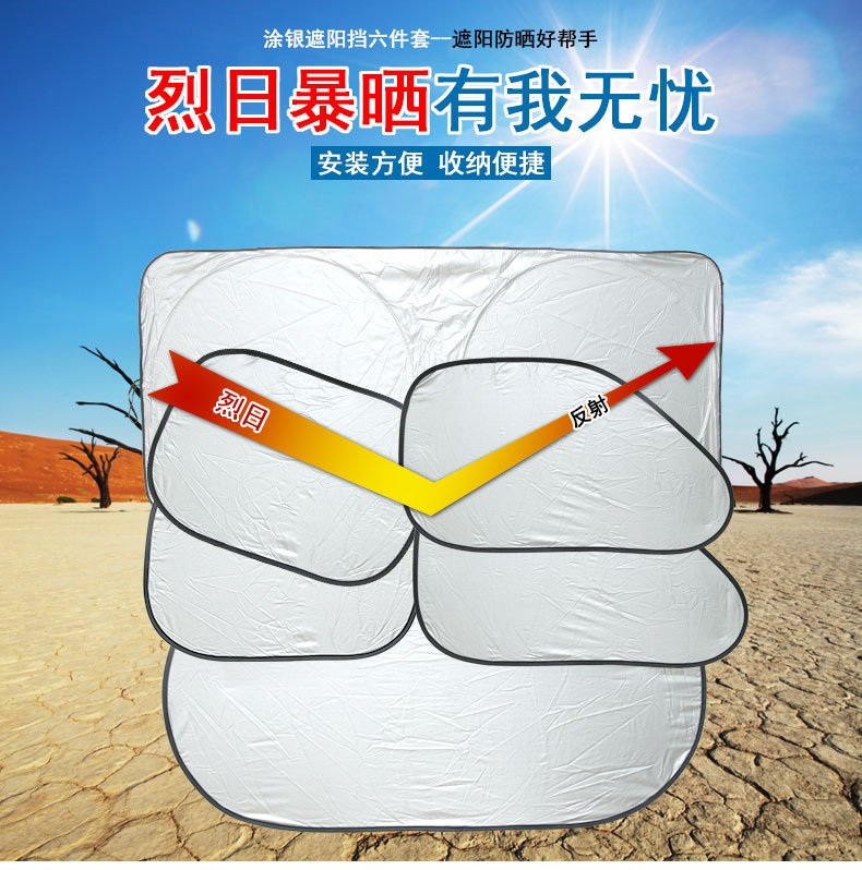 汽车遮阳挡前后侧挡风玻璃车窗防晒隔热收纳袋涂银六套装夏季用品