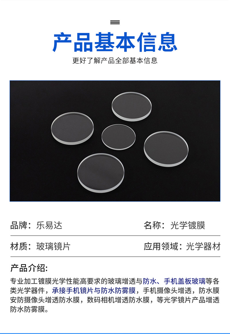 品牌: 乐易达 是否支持定制: 支持定制 货号: 圆形钢化玻璃镀膜