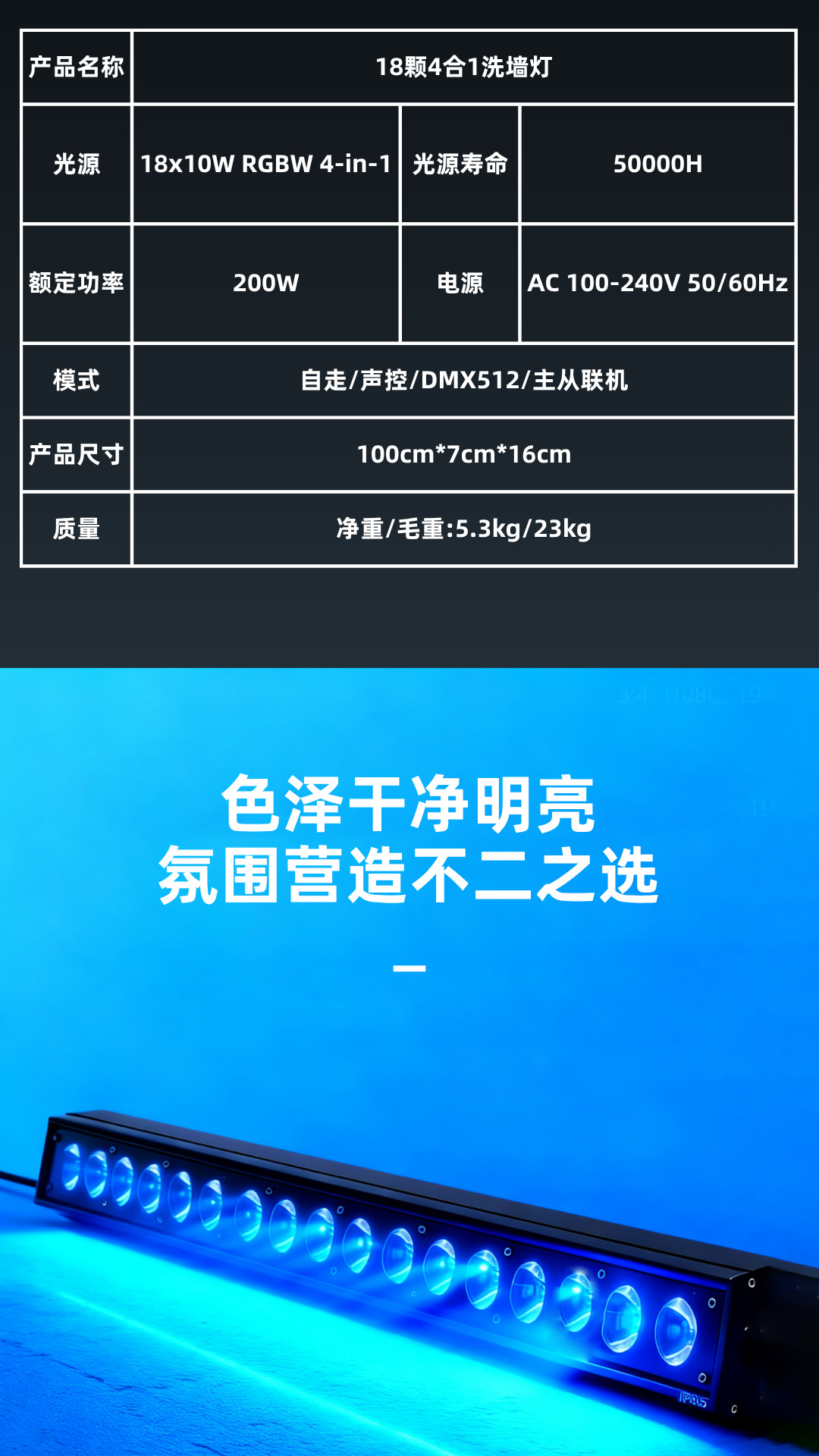 光源:18x10W RGBW 4-in-1