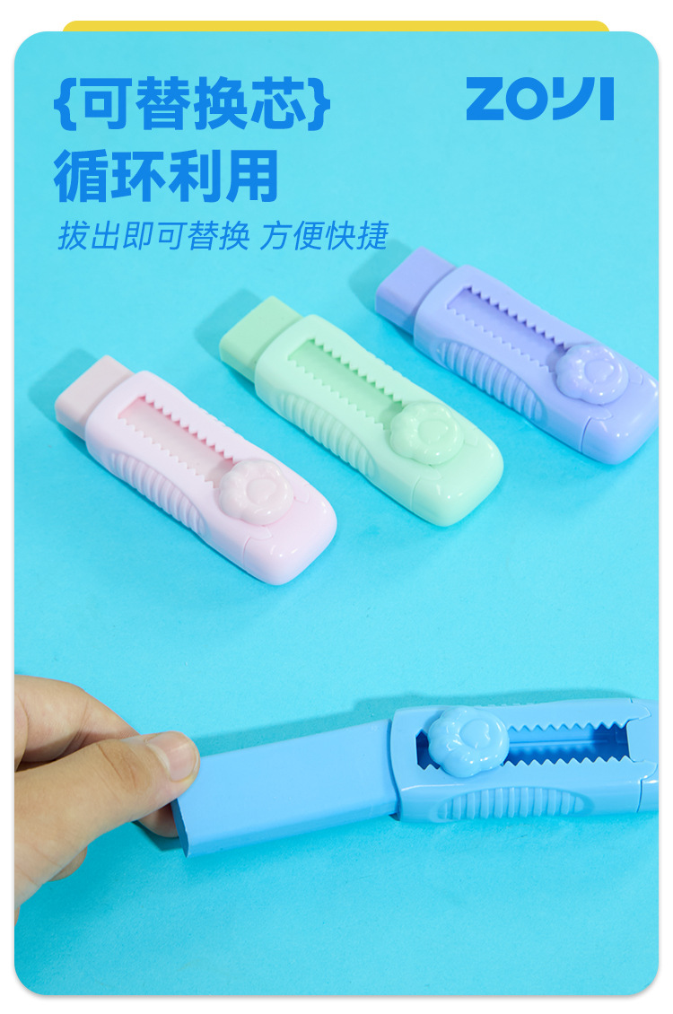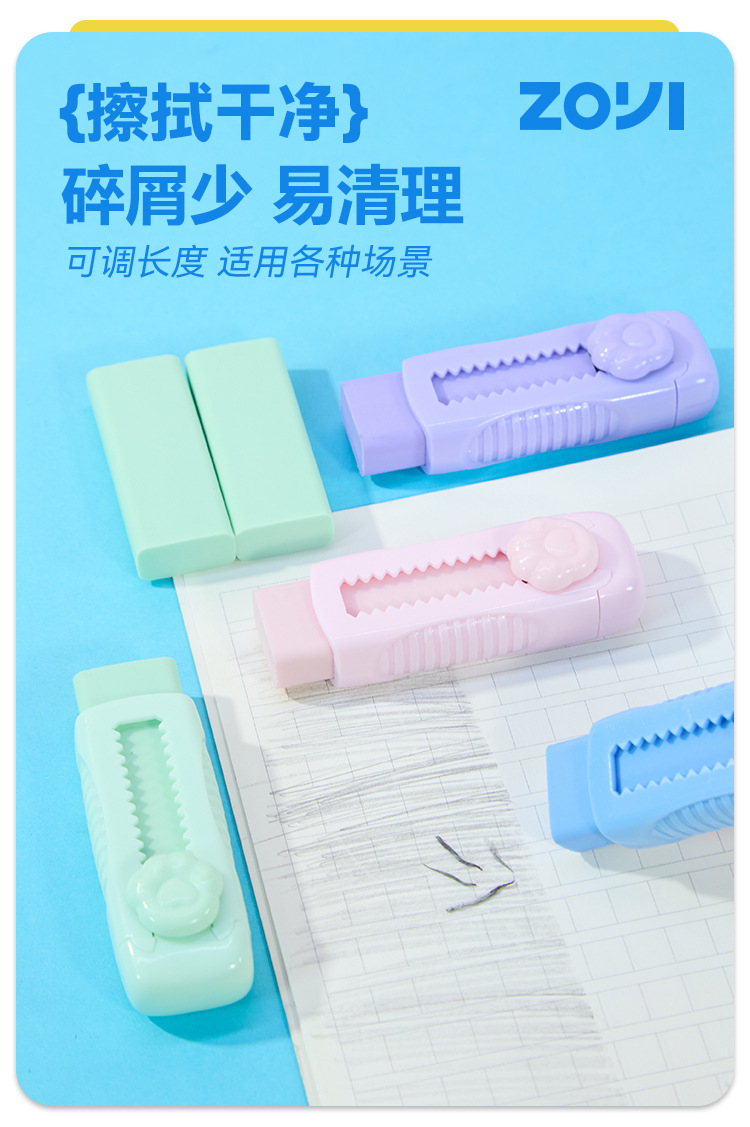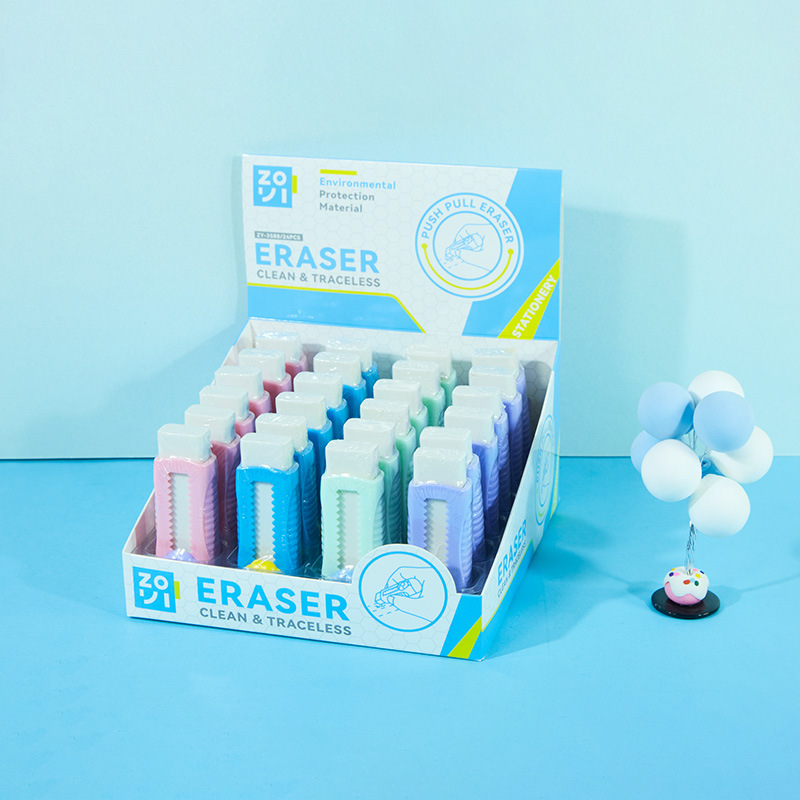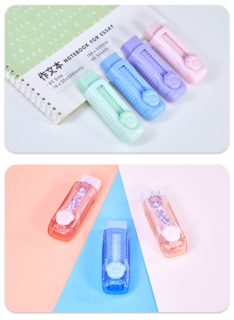 马卡龙色推拉橡皮推动式伸缩干净少屑学生儿童文具橡皮擦厂家定制