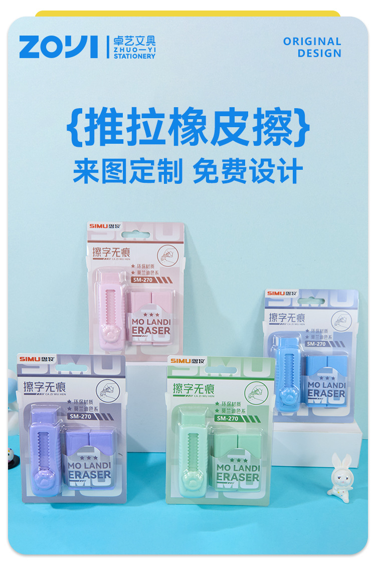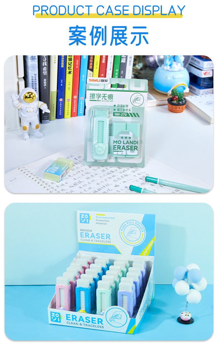 品牌: 卓艺文具 材质: 橡皮 尺寸: 10.3*2*14.5cm/19.5*7 造型: 长方形 型号: SM-270/ZY-3588 规格: 推拉橡皮擦吸卡装,推拉橡皮擦单个装 用途: 涂改 适用送礼场合: 毕业,派对聚会,其他 加印LOGO: 可以 加工定制: 是 净重: 75/860 是否进口: 否 有可授权的自有品牌: 否 是否跨境出口专供货源: 是 是否属于礼品: 是,个人礼品 适用送礼关系: 晚辈,朋友,孩子,同学,其他 适用节日: 其他 是否专利货源: 否 是否IP授权: 否 是否电动: 否