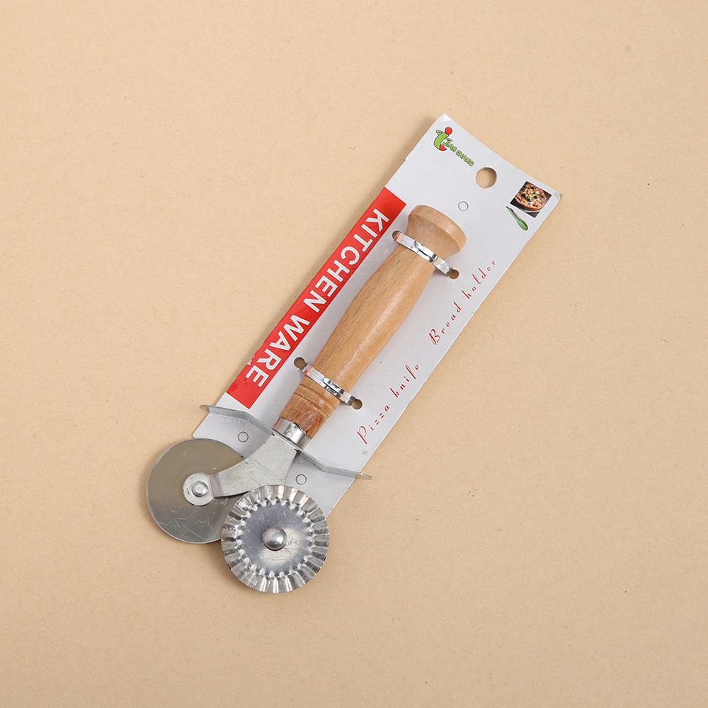 不锈钢木柄披萨滚轮刀薄饼切滚刀单双轮圆形披萨切刀烘焙工具批发 English | 投诉