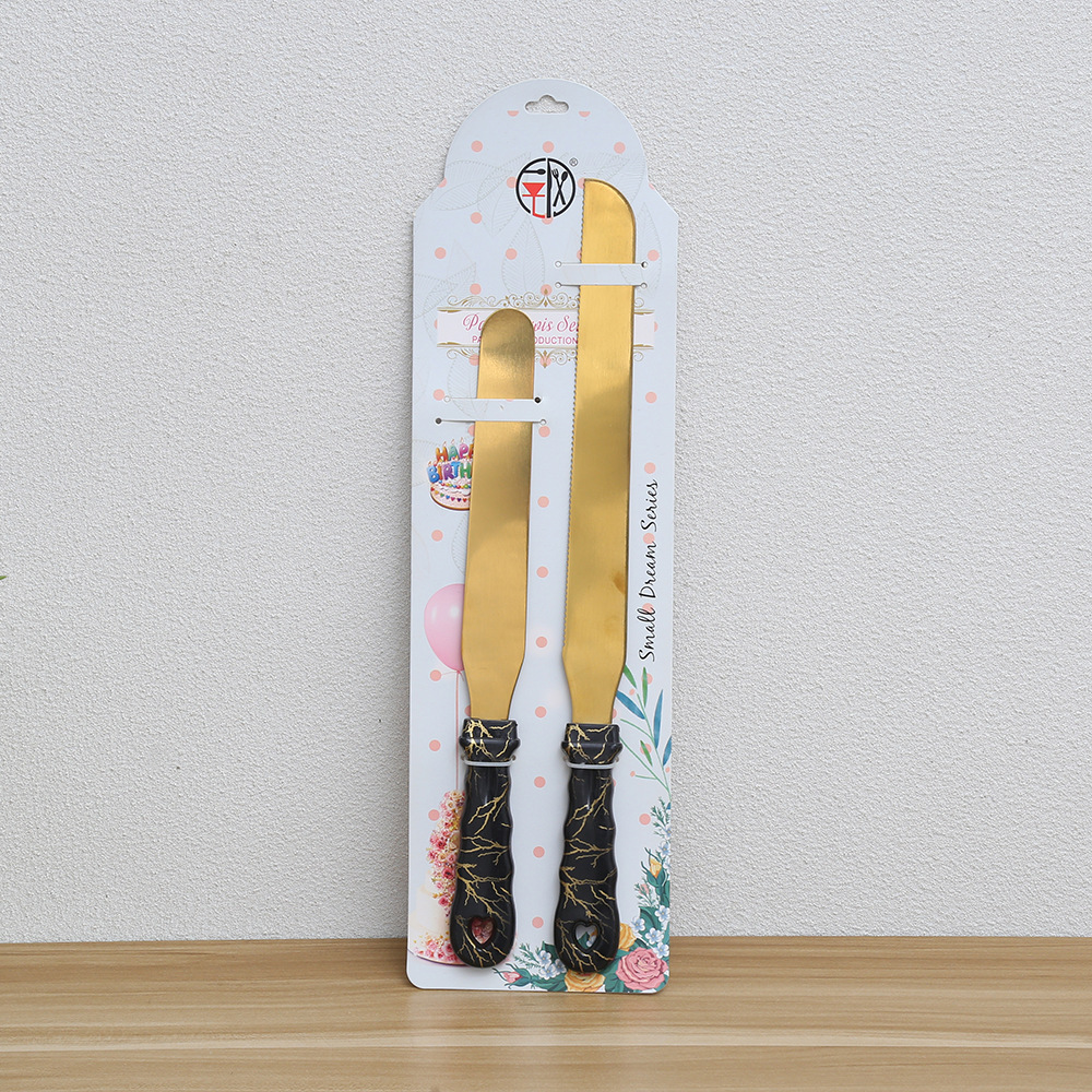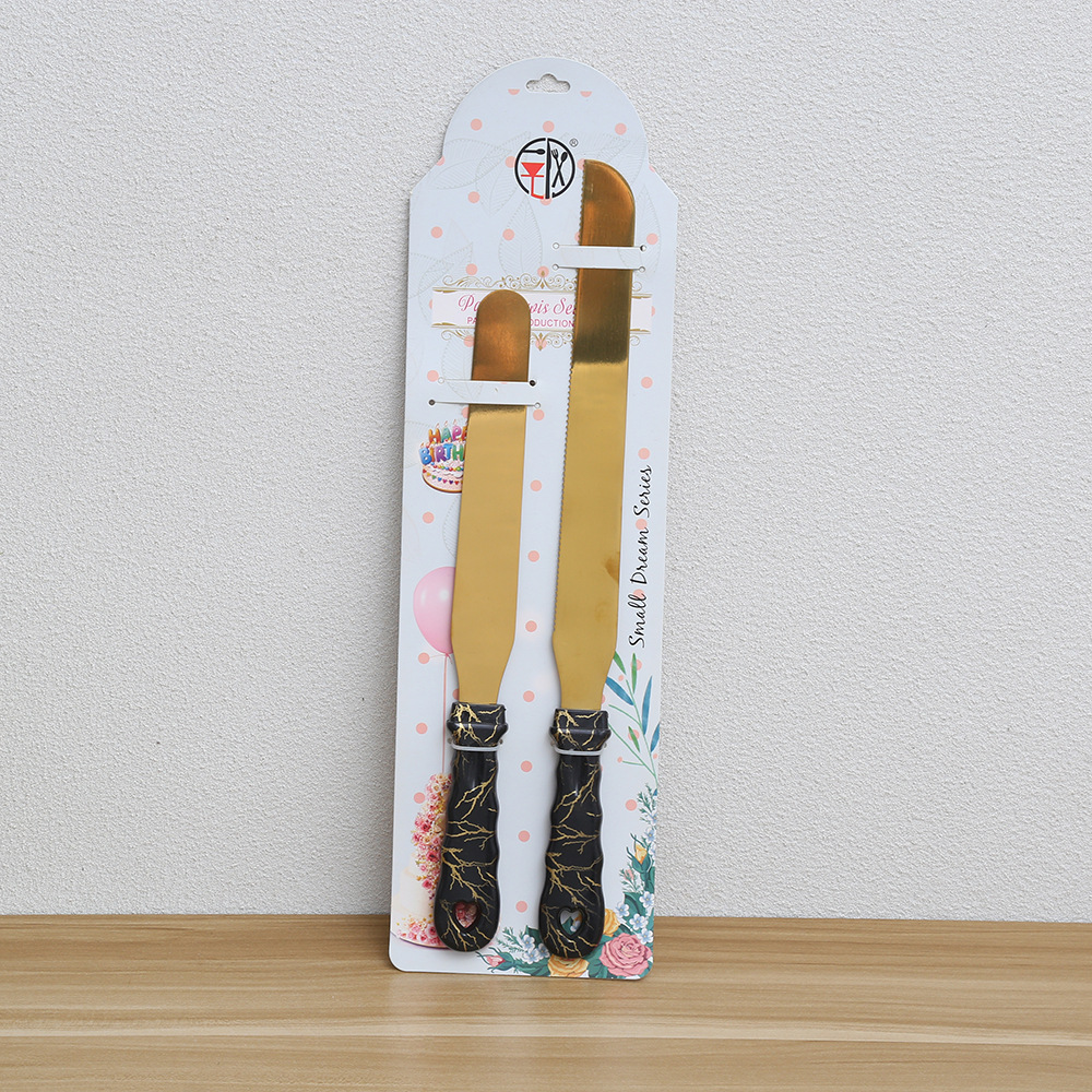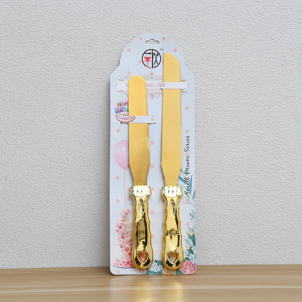 多色手柄蛋糕刀铲两件套 不锈钢镀金烘焙刀具 婚庆庆典切蛋糕工具 English | 投诉