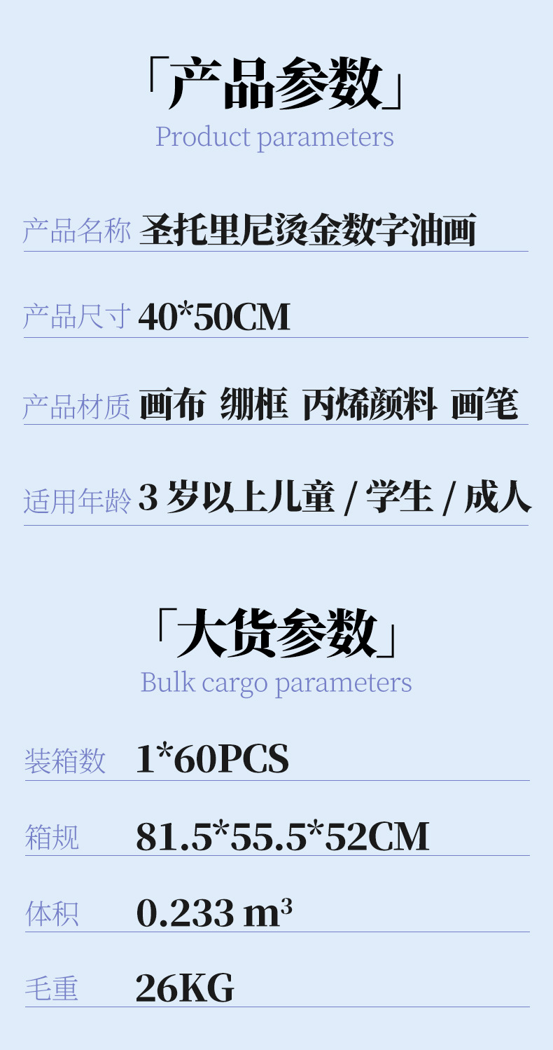 | (40*50实木内框+颜料画笔)精美彩卡塑封包装 | ¥1440 | 9999幅可售 |