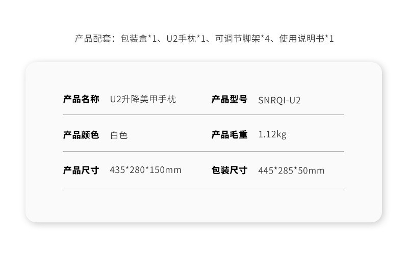 | SNRQI不可升降手枕(白色中文款) | ¥0 | 6636套可售 |