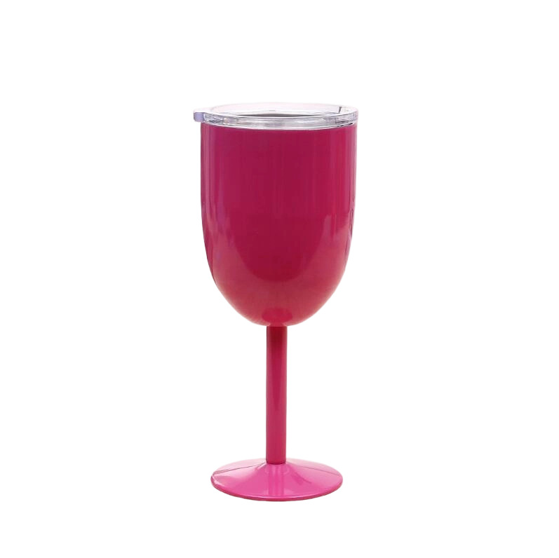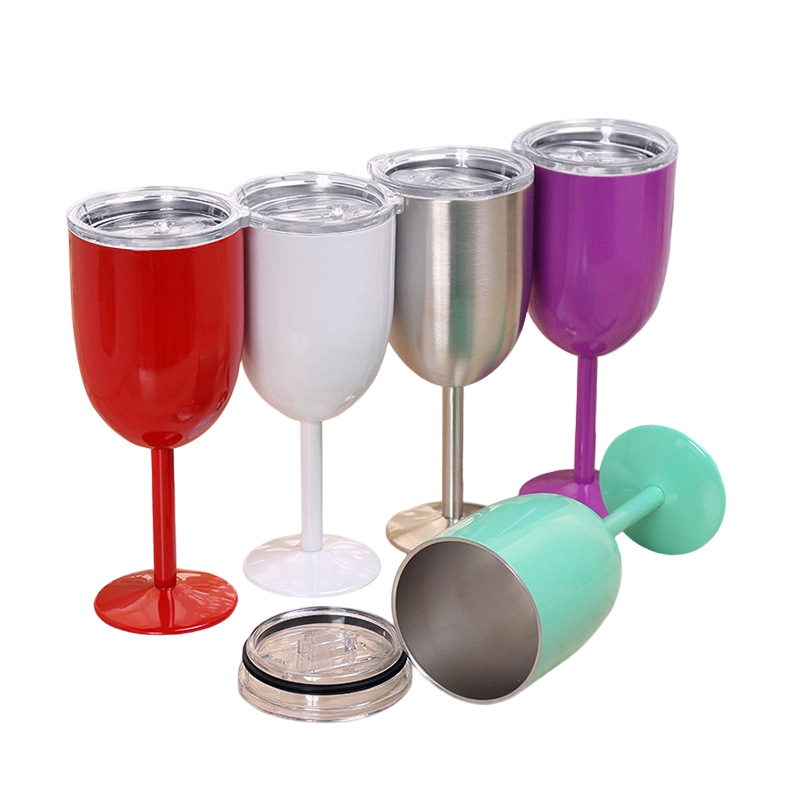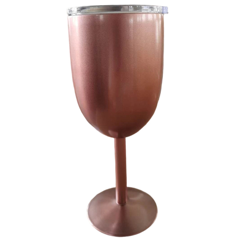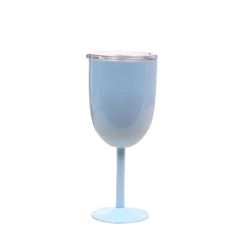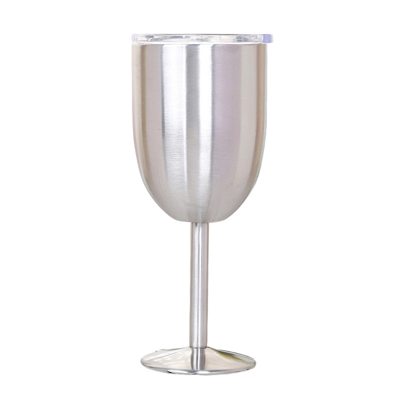 跨境304不锈钢双层高脚杯带盖红酒杯真空保温杯保冷香槟杯批发