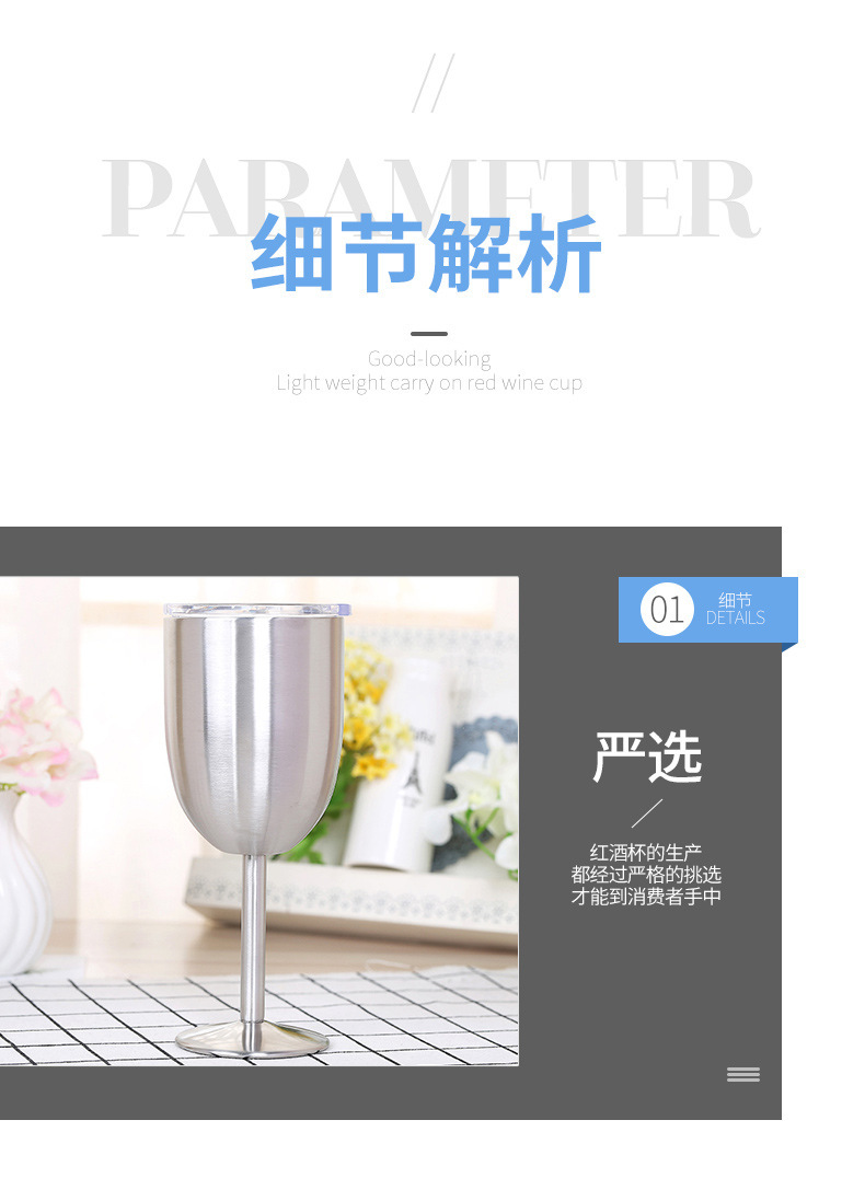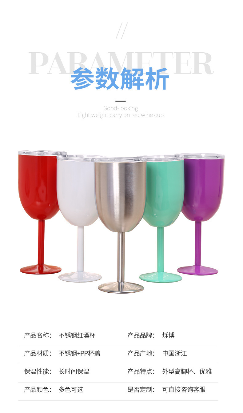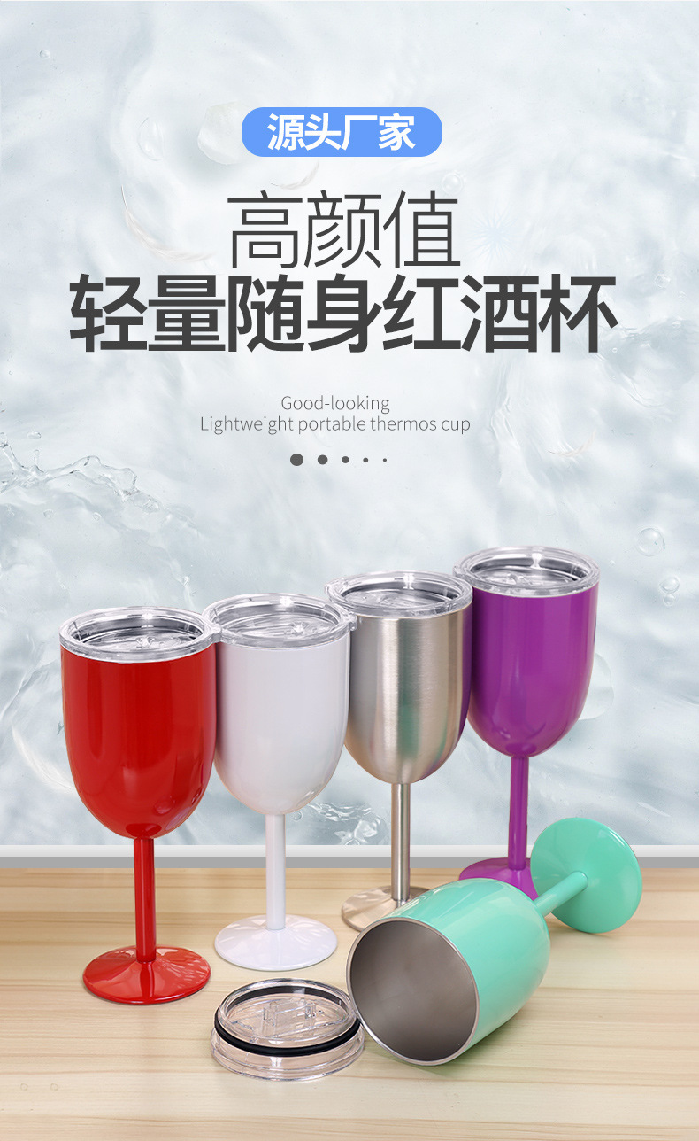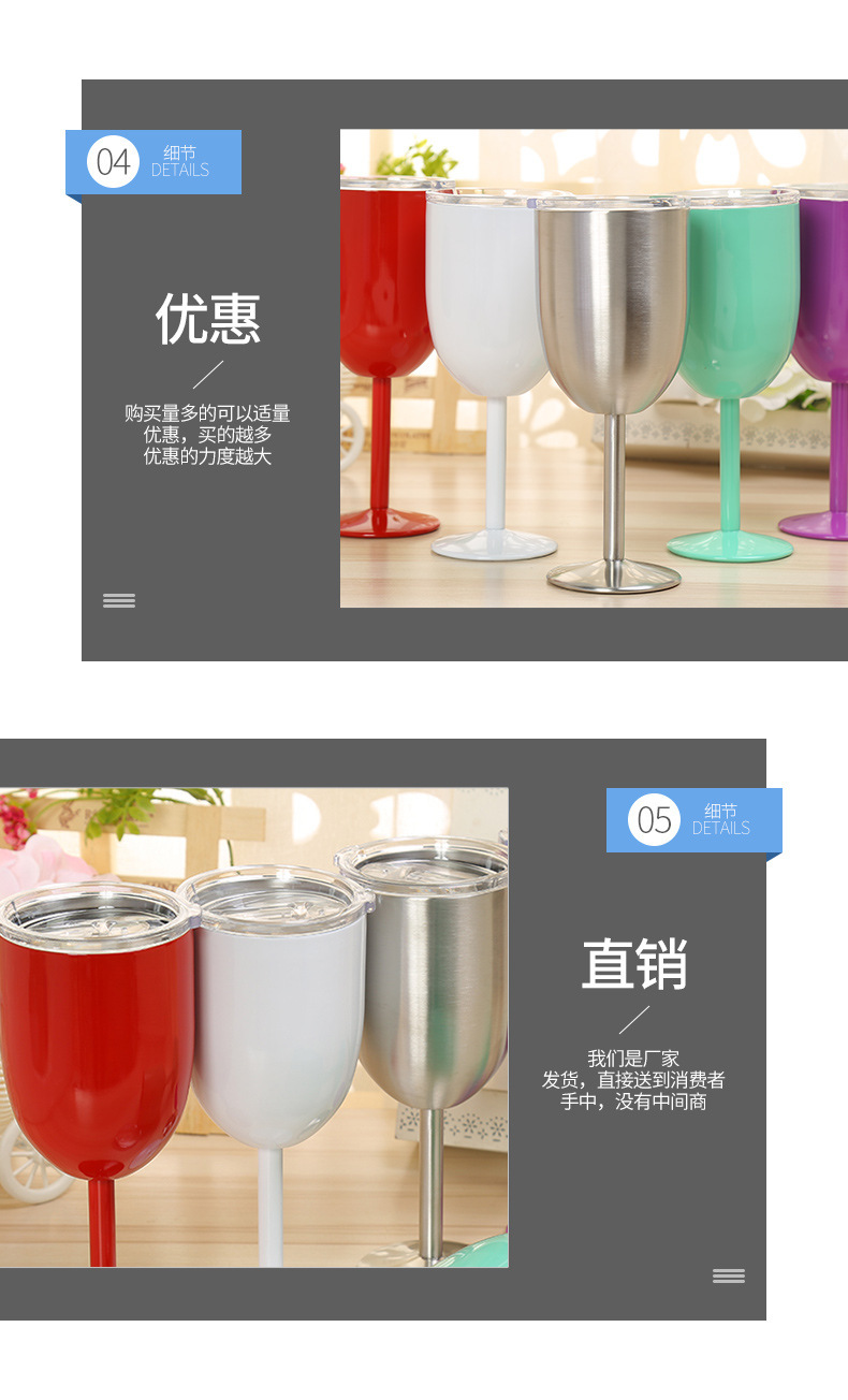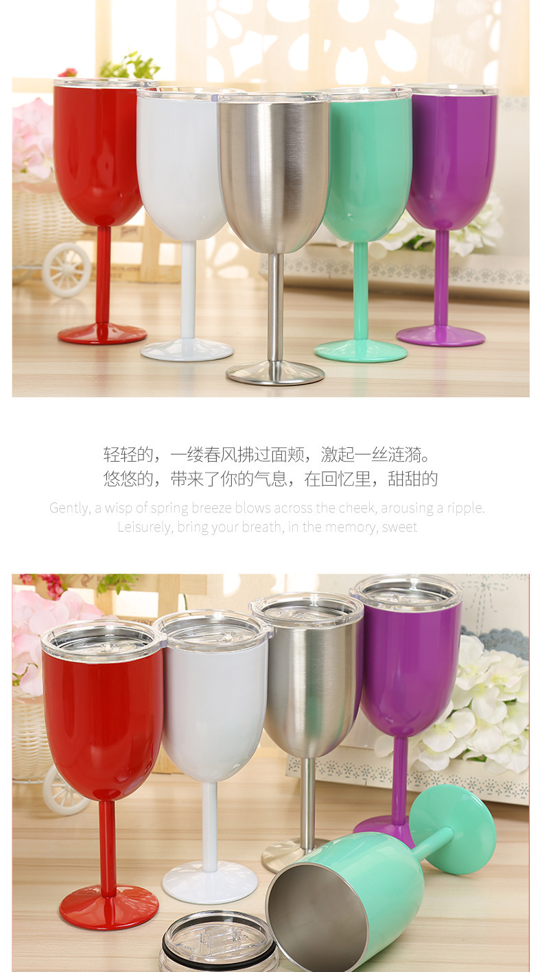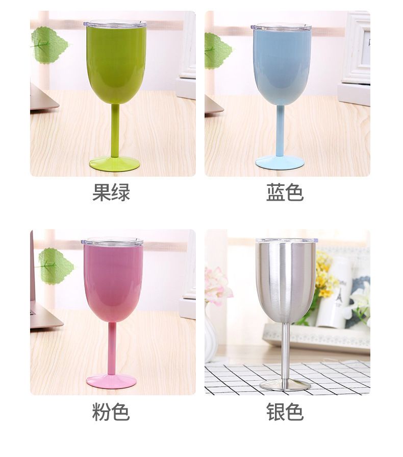 跨境304不锈钢双层高脚杯带盖红酒杯真空保温杯保冷香槟杯批发 投诉