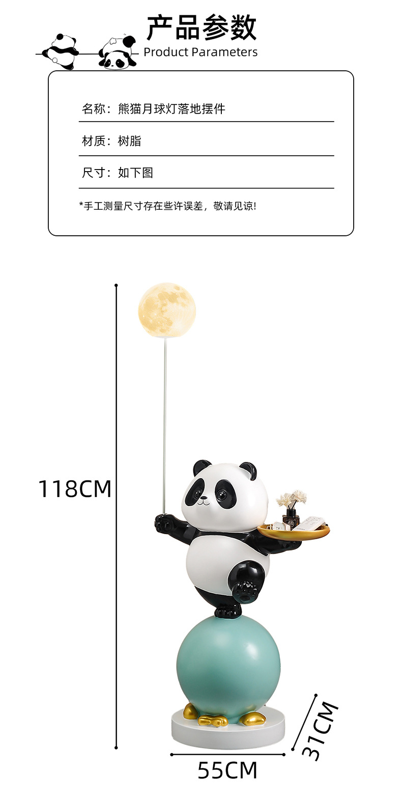 熊猫大型落地摆件客厅儿童房装饰灯电视柜沙发旁公仔乔迁新居礼物 投诉
