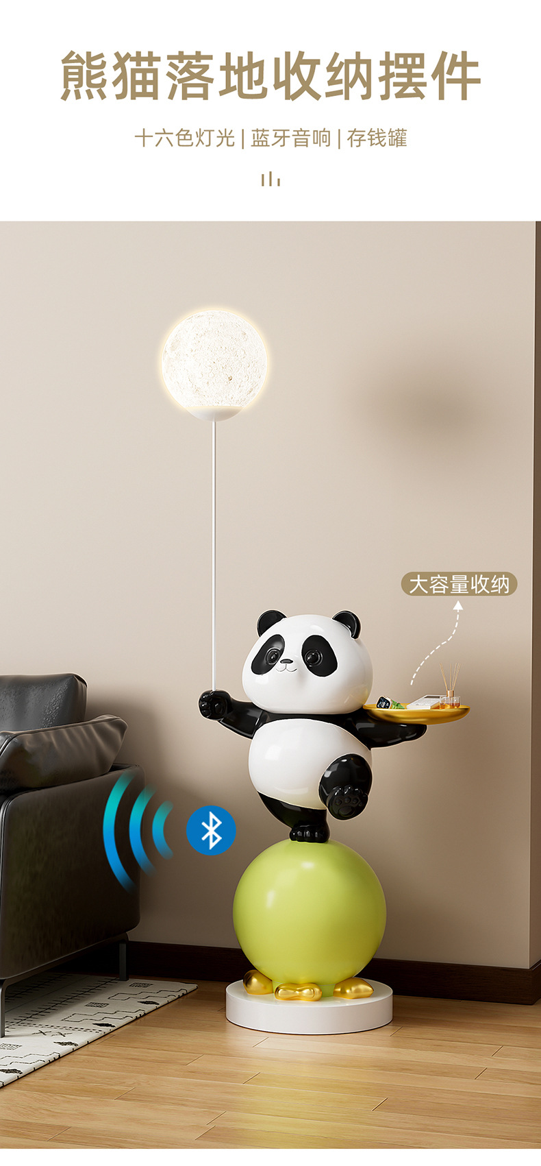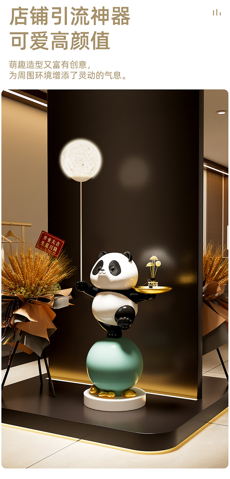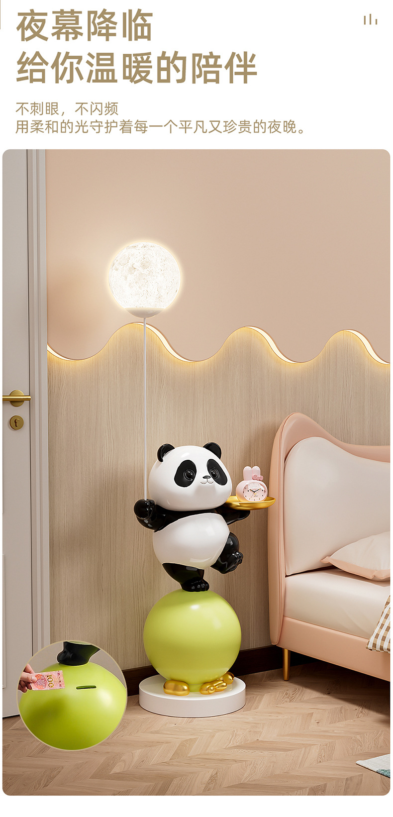 熊猫大型落地摆件客厅儿童房装饰灯电视柜沙发旁公仔乔迁新居礼物