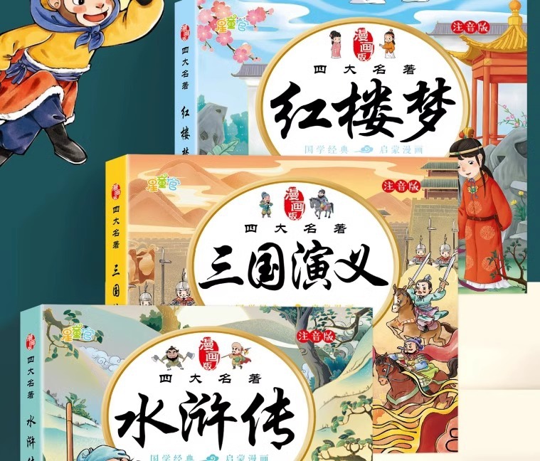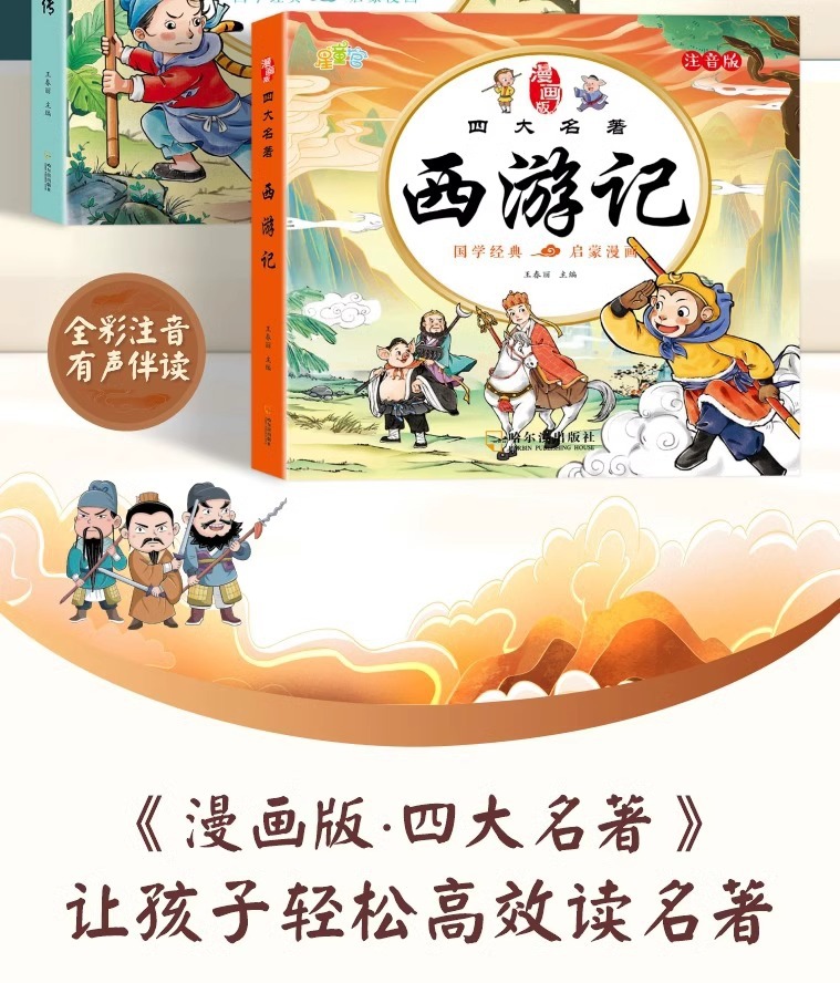 儿童四大名着漫画版西游记三国演义水浒传小学生课外阅读故事书