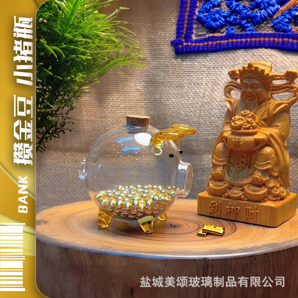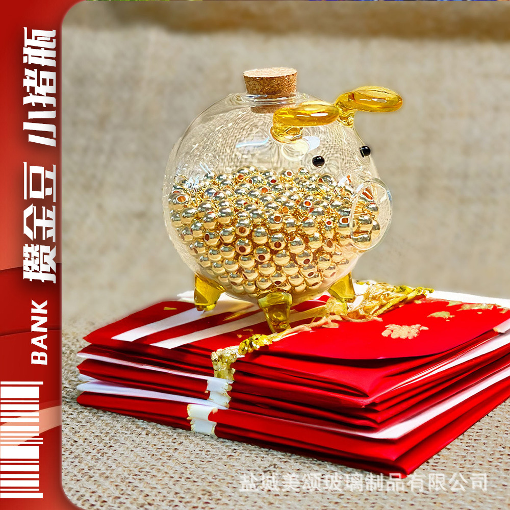 攒金豆豆玻璃瓶存钱收纳罐收藏瓶存钱罐玻璃珠高硼硅玻璃彩绘