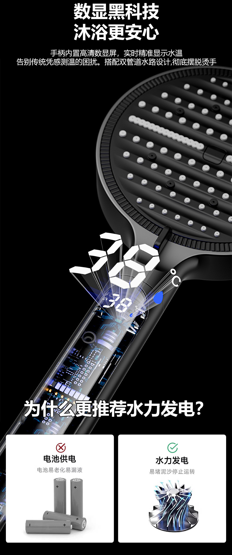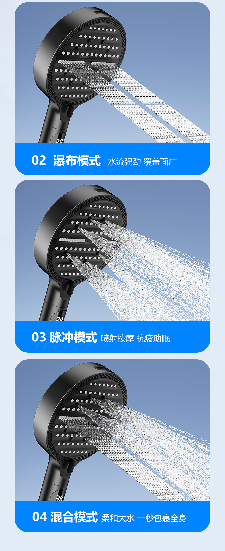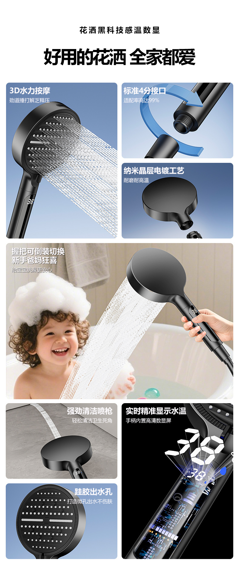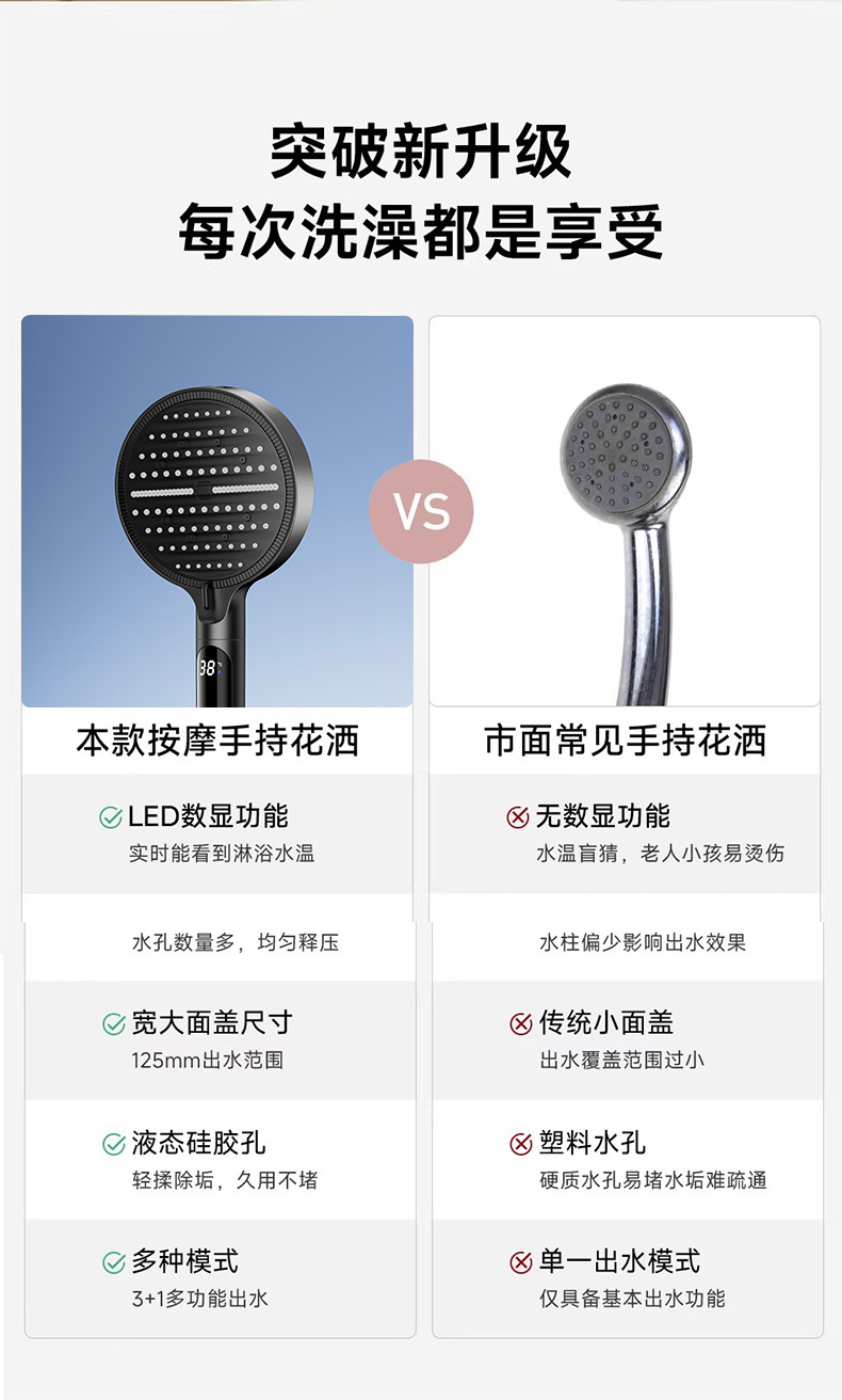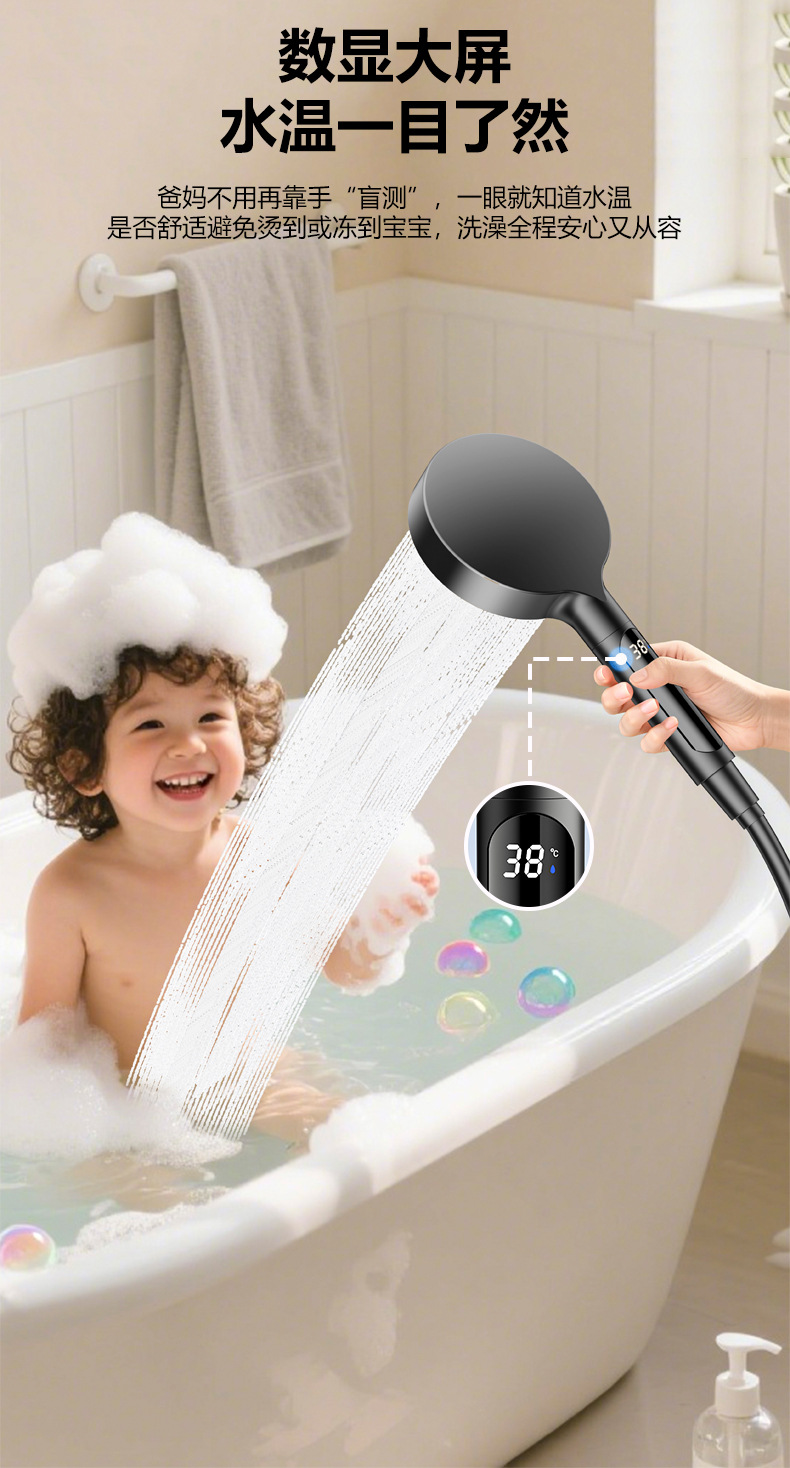 新款数显增压淋浴花洒喷头家用多功能洗澡沐浴手持花洒莲蓬头批发 投诉
