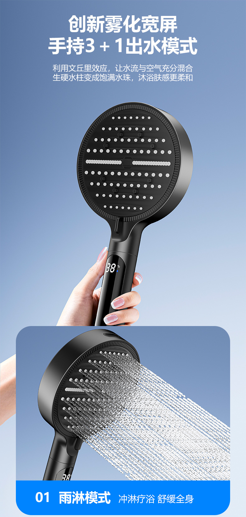 新款数显增压淋浴花洒喷头家用多功能洗澡沐浴手持花洒莲蓬头批发