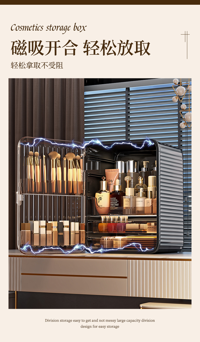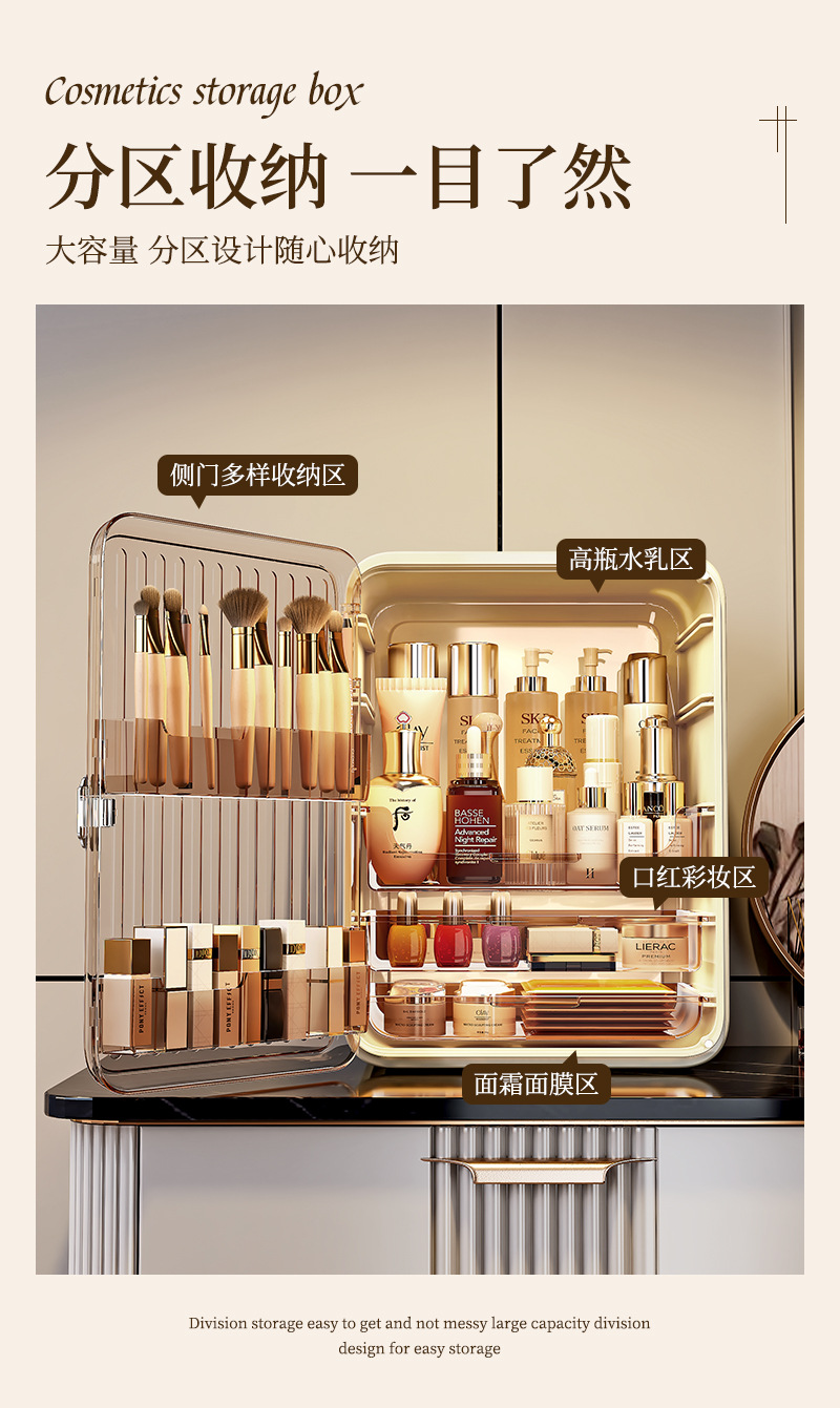 化妆盒轻奢大容量化妆品收纳架梳妆台护肤品整理多层防尘收纳盒
