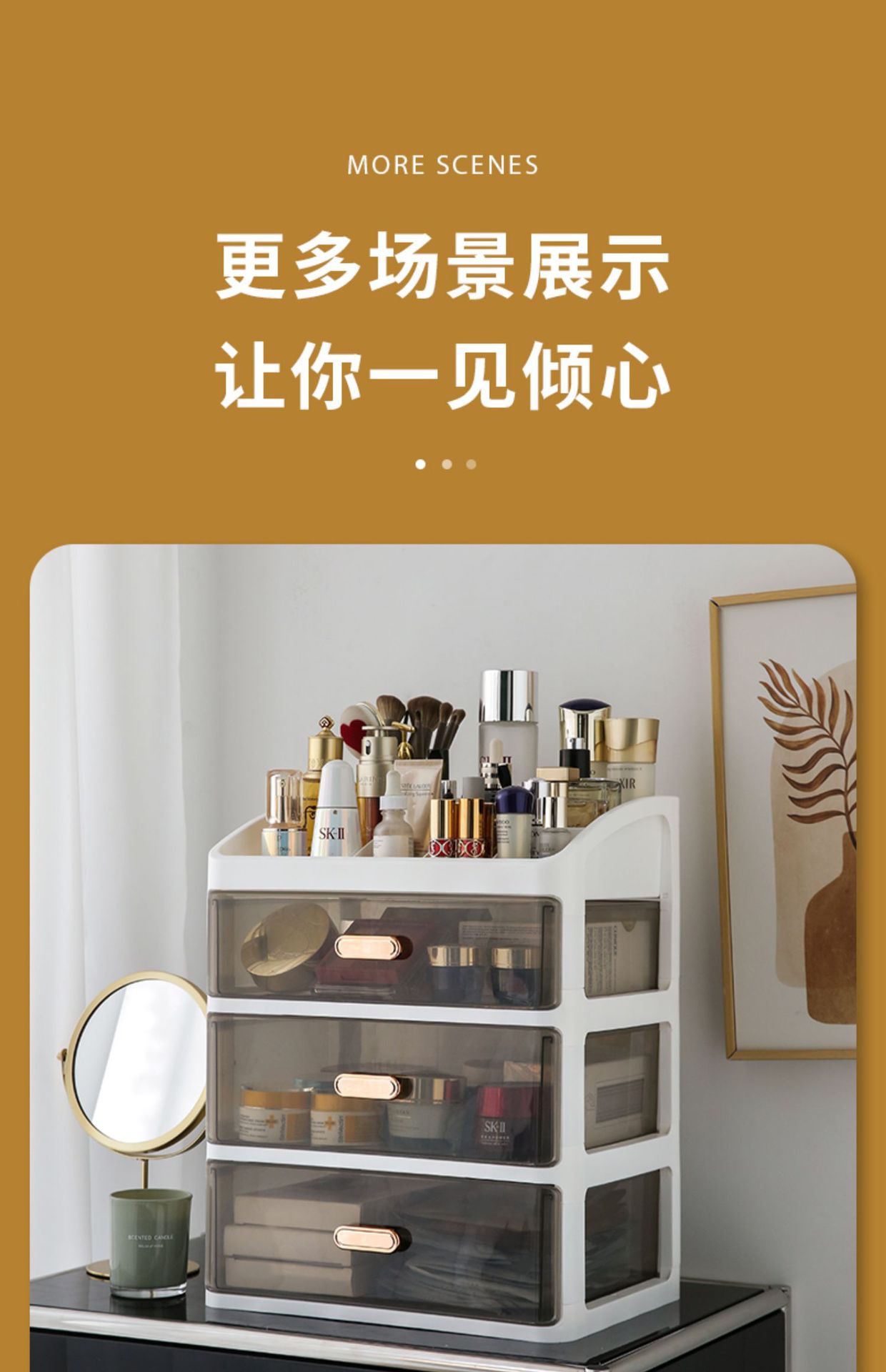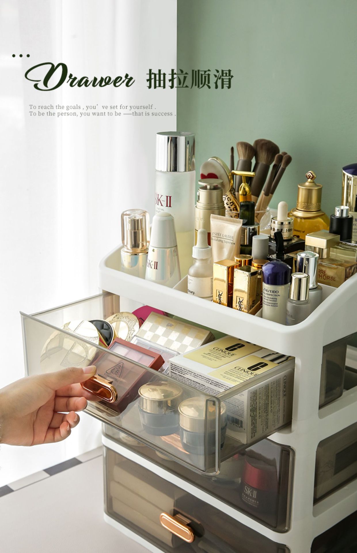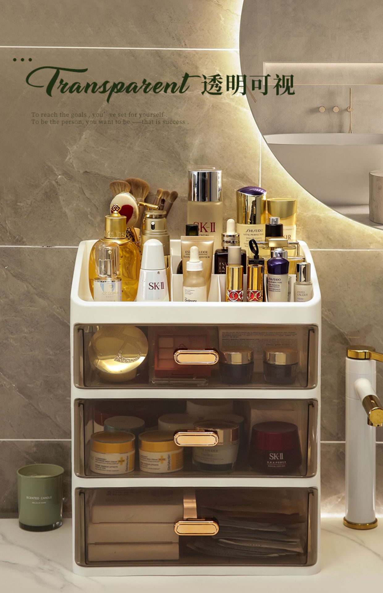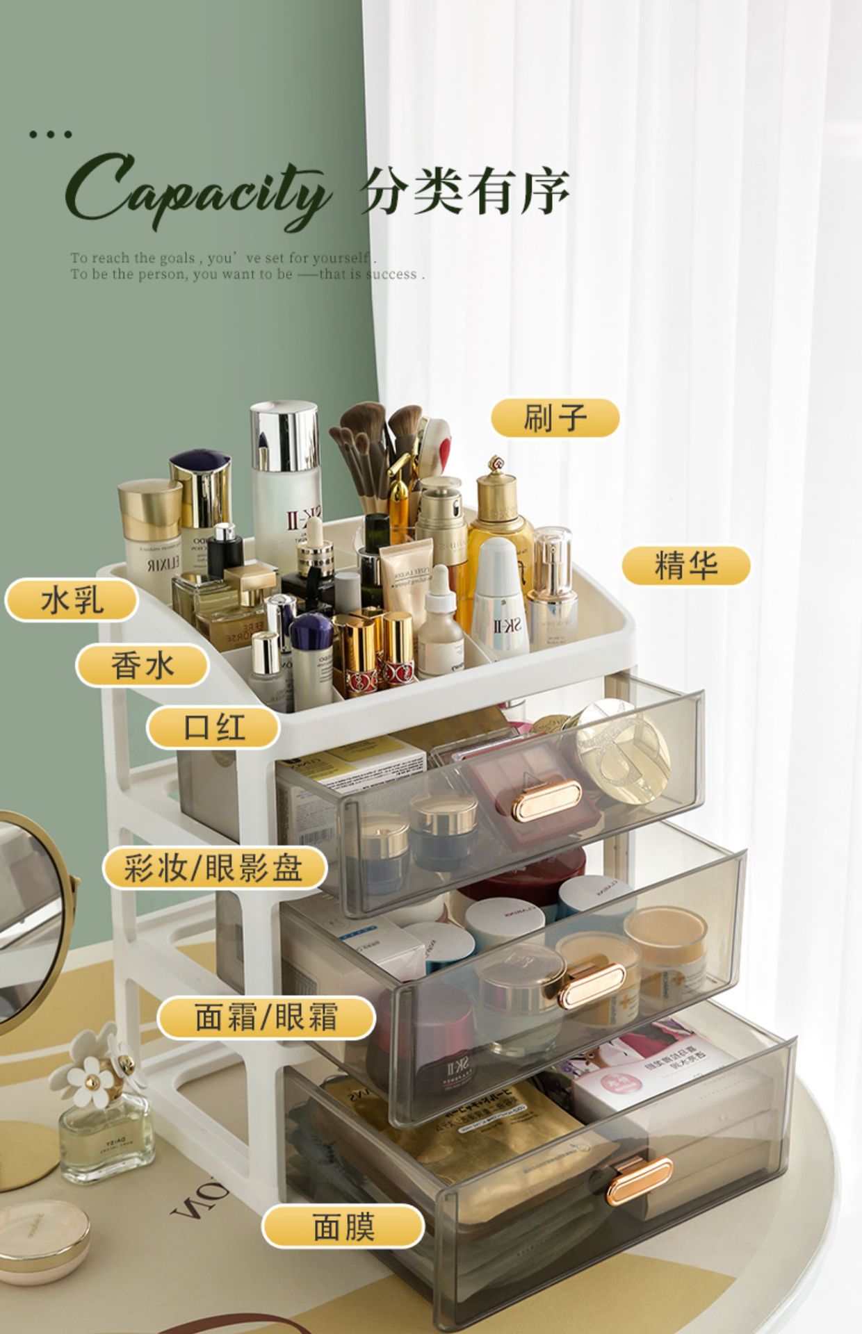 化妆品收纳盒抽屉式梳妆台置物架桌面面膜护肤柜箱大容量透明防尘