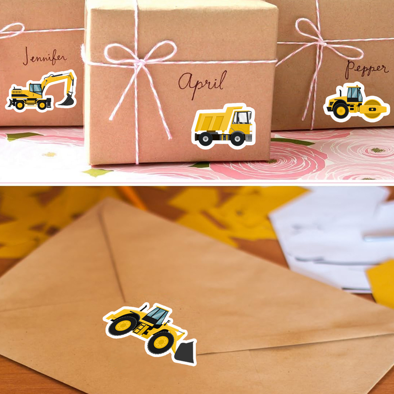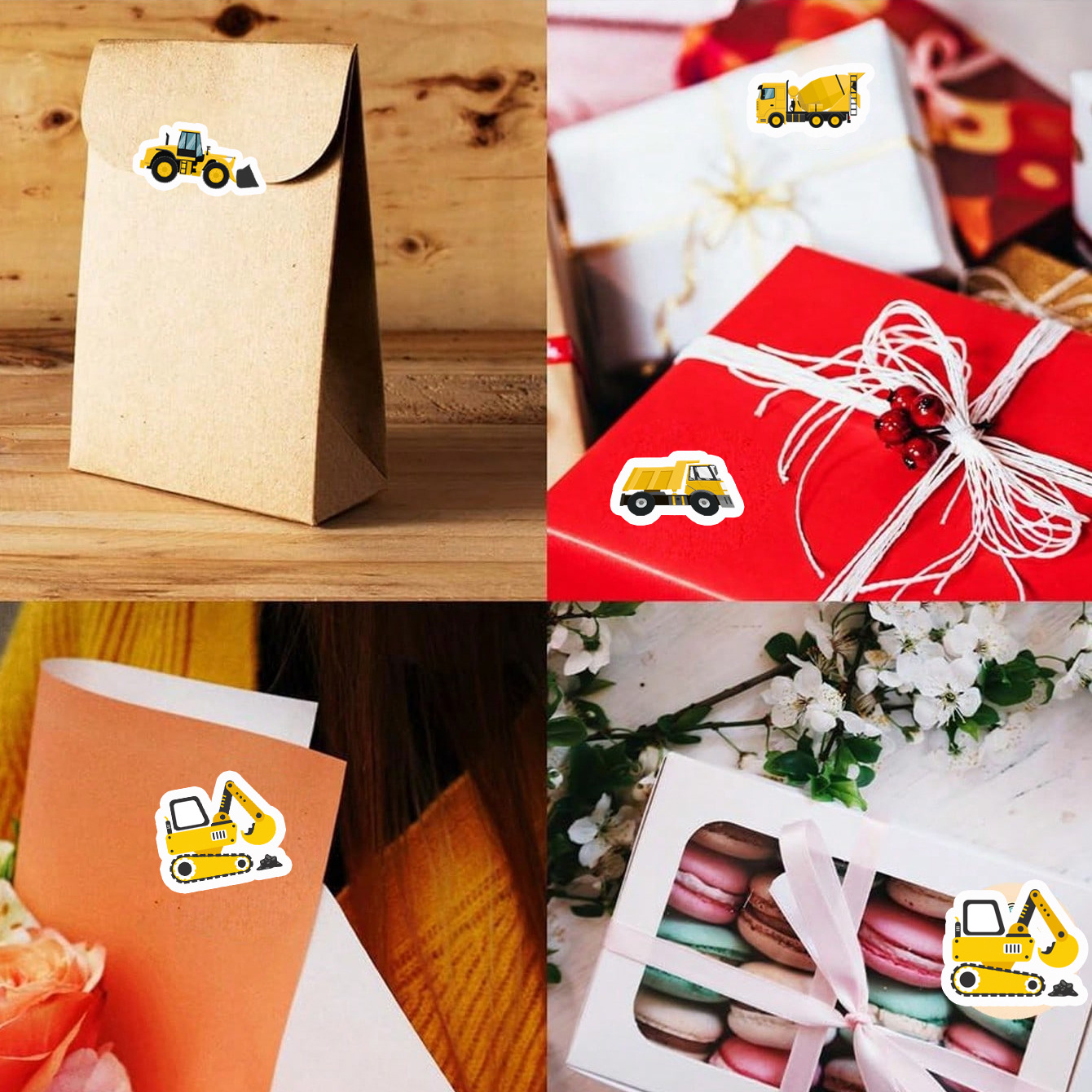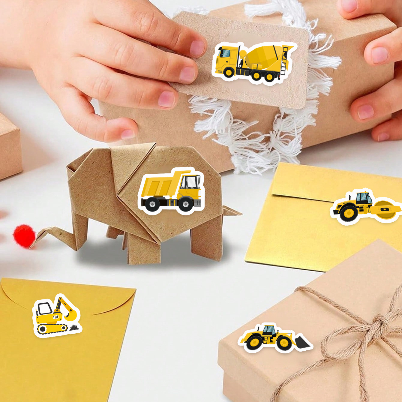 500张/卷 工程车卷卷贴胶带礼物信封装饰PVC防水封口贴纸跨境热销