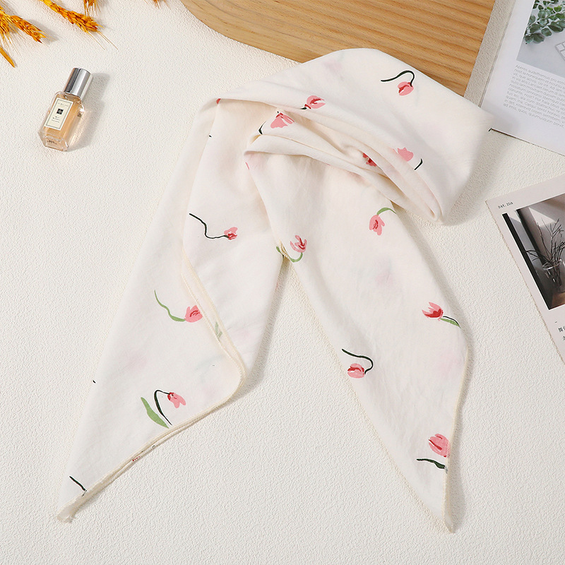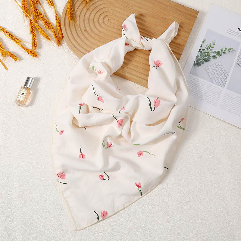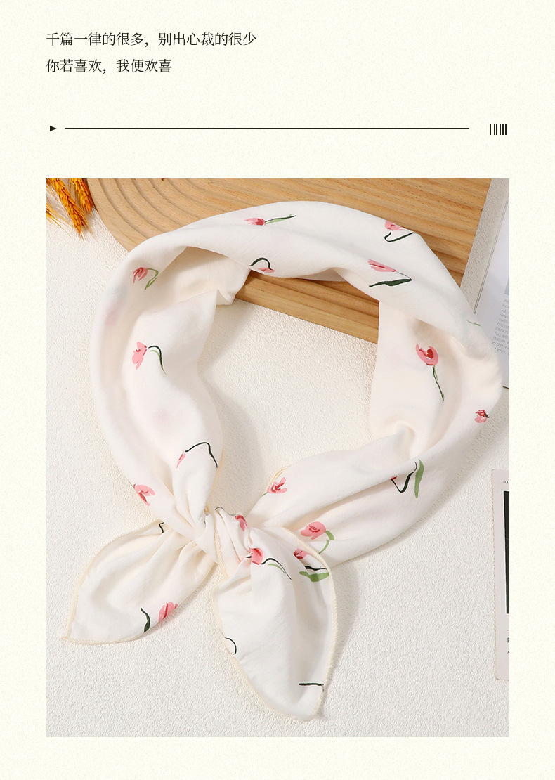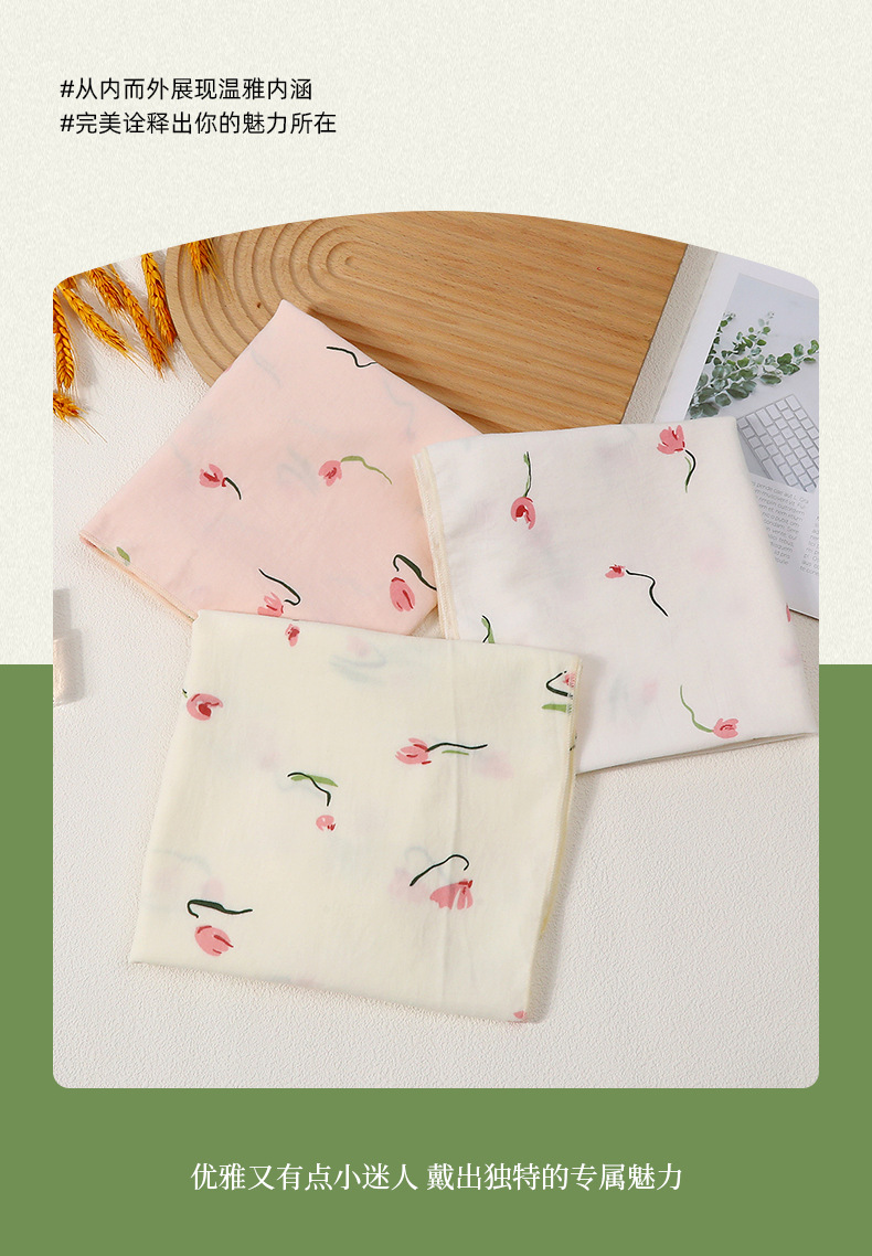 2025新款可爱韩版方巾女款夏季薄款透气棉麻围巾领巾护脖装饰发带 English | 投诉