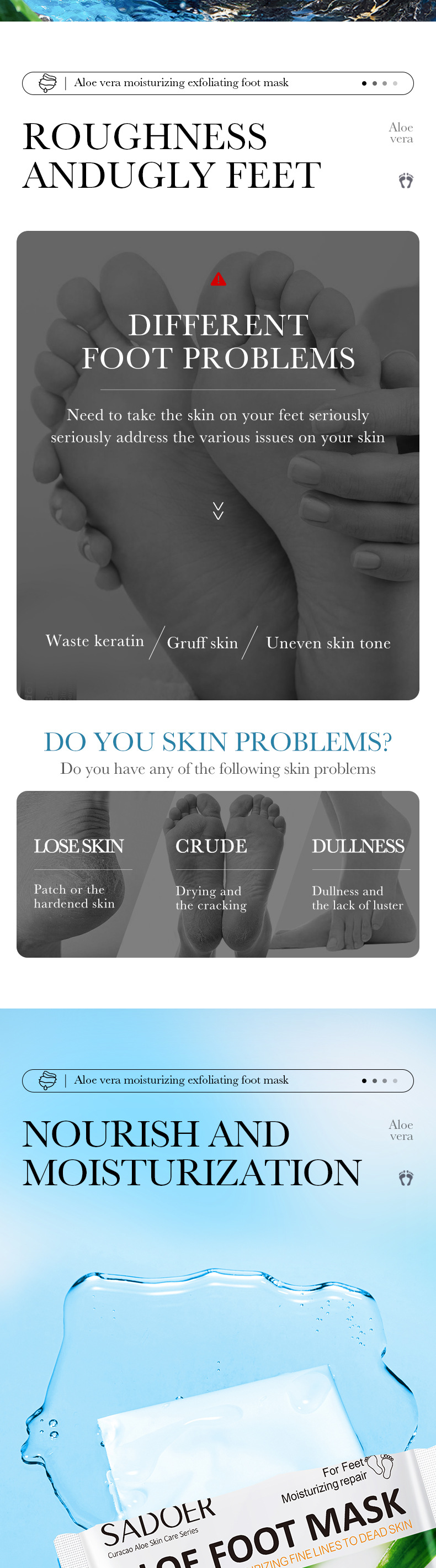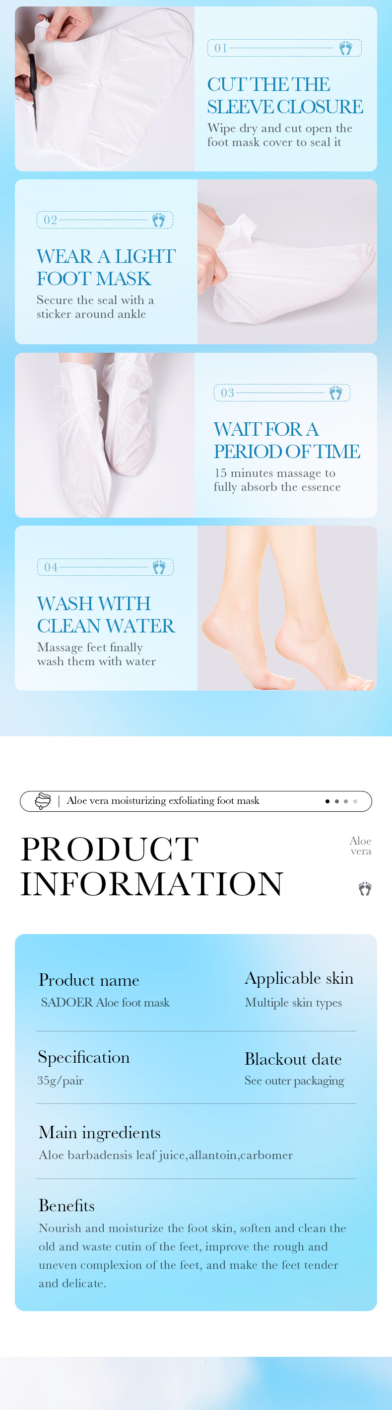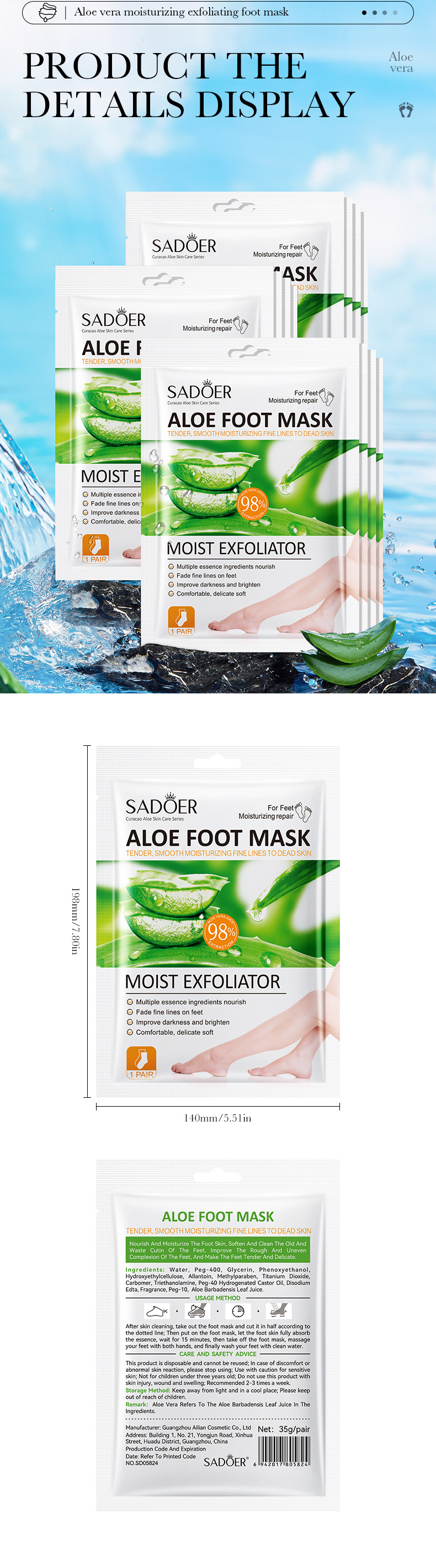 全英文SADOER芦荟滋润祛角质足膜 嫩肤足部护理足膜商贸城六区专供出口 English | 投诉