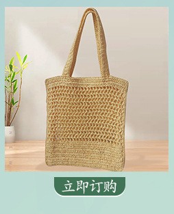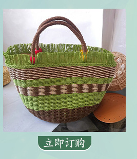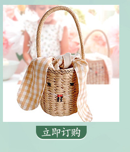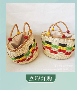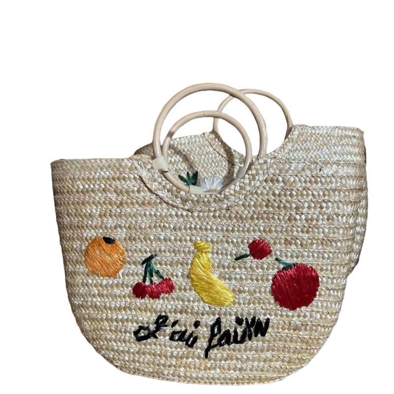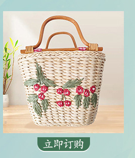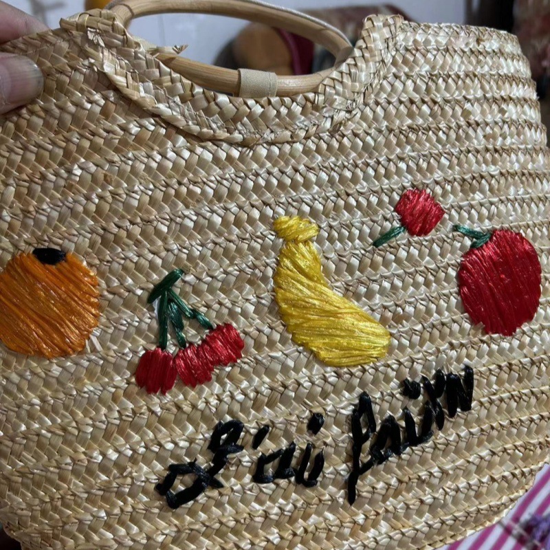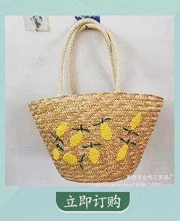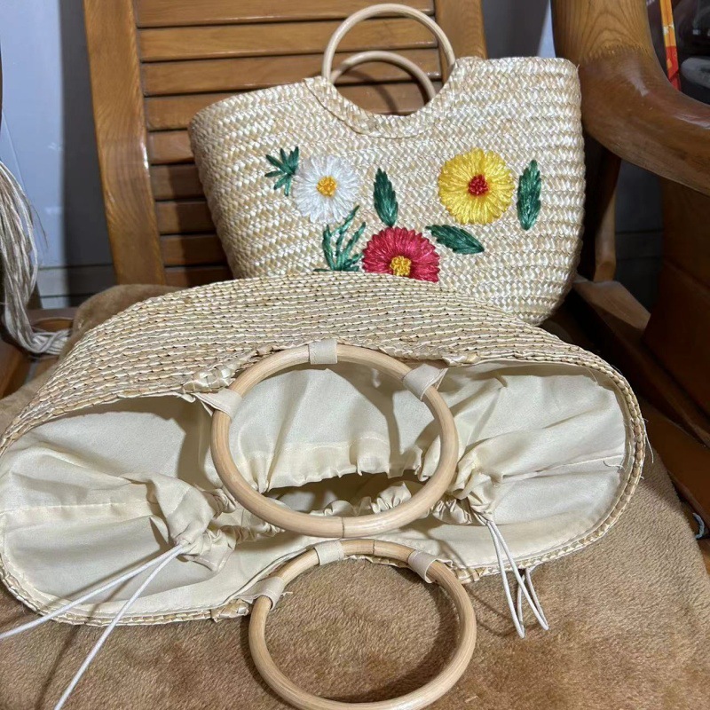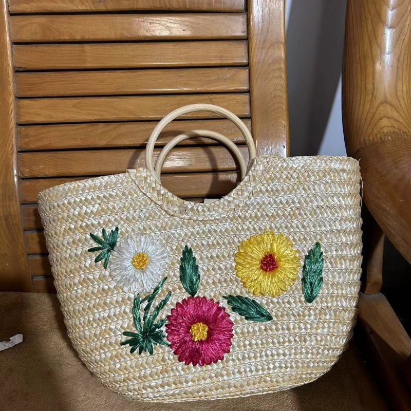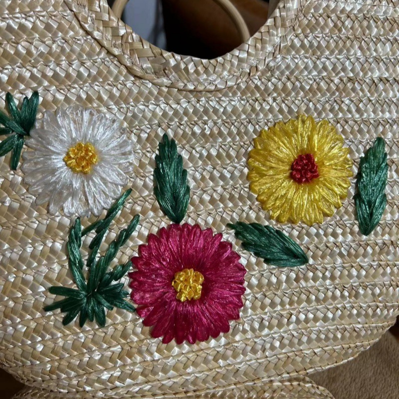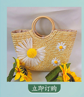 天然麦草小雏菊刺绣手提包 面高25cm宽37cm底厚12cm
