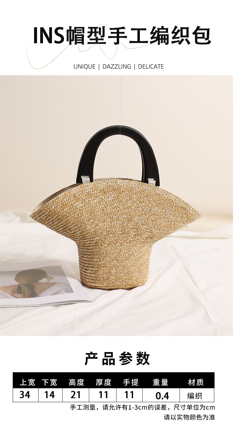 小众木手提帽子草编包新款小清新麦草编织包度假风沙滩包百搭女包 English | 投诉