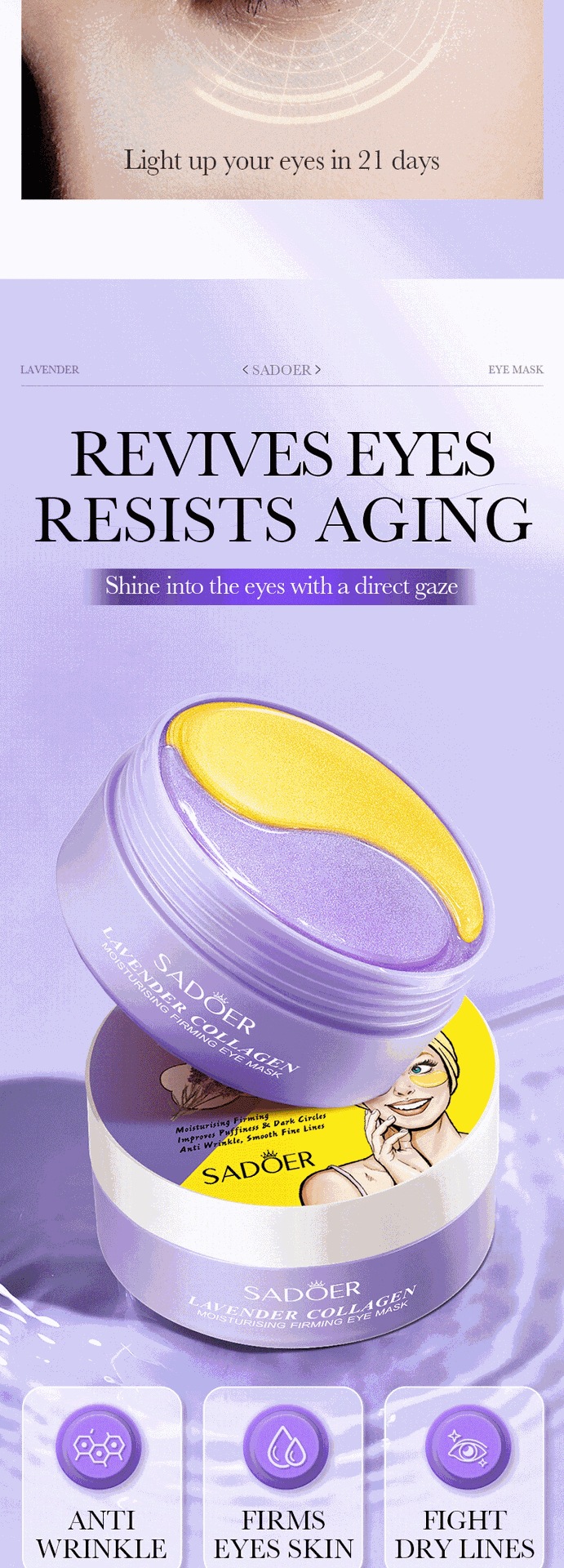 全英文薰衣草胶原眼膜80gSADOER紧致滋润眼部眼膜贴商贸城六区