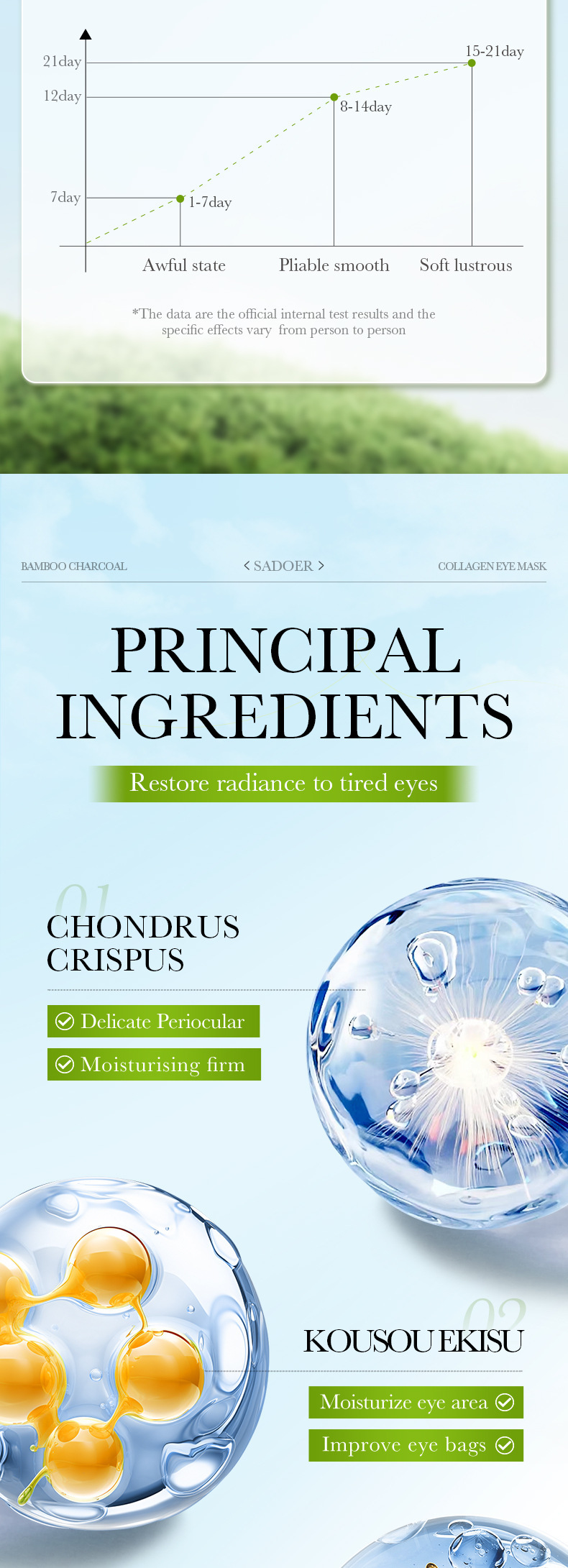 品牌: SADOER 成分原料: 叶黄素 规格: 正常规格 化妆品功效: 保湿 产品形态: 厚片 是否进口: 否 品牌类型: 精品国货 商品条形码: 6973098895244 生产许可证号: 粤妆20230009 保质期: 3年 产地: 广东省 净含量: 80g 主要下游平台: ebay,亚马逊,wish,速卖通,独立 主要销售地区: 非洲,欧洲,南美,东南亚,北美,东北亚, 有可授权的自有品牌: 是 是否跨境出口专供货源: 是 适用肤质: 通用 产品规格: 黑珍珠眼膜(新)80g(60贴/30对) 货号: NO.SD95244 95282 非特化妆品备案证号: 粤G妆网备字2023392831