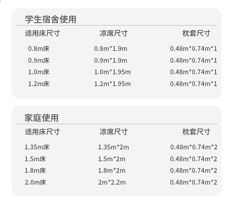 | 0.9m两件套 席子0.9*2.0m+枕套一只 | ¥3770 | 499床可售 |