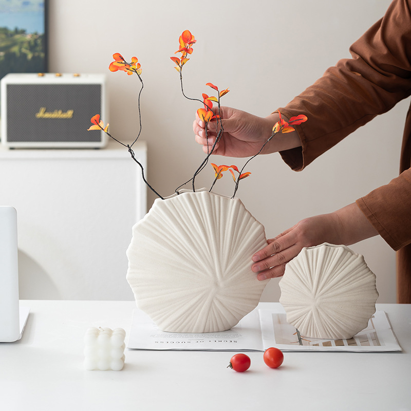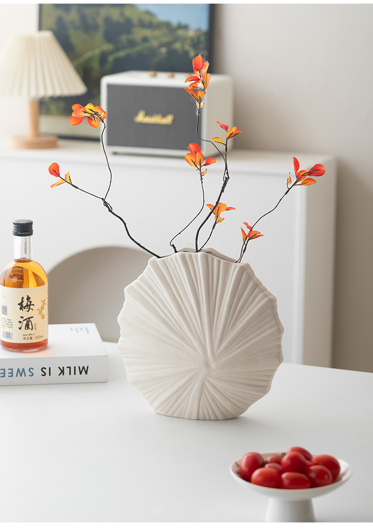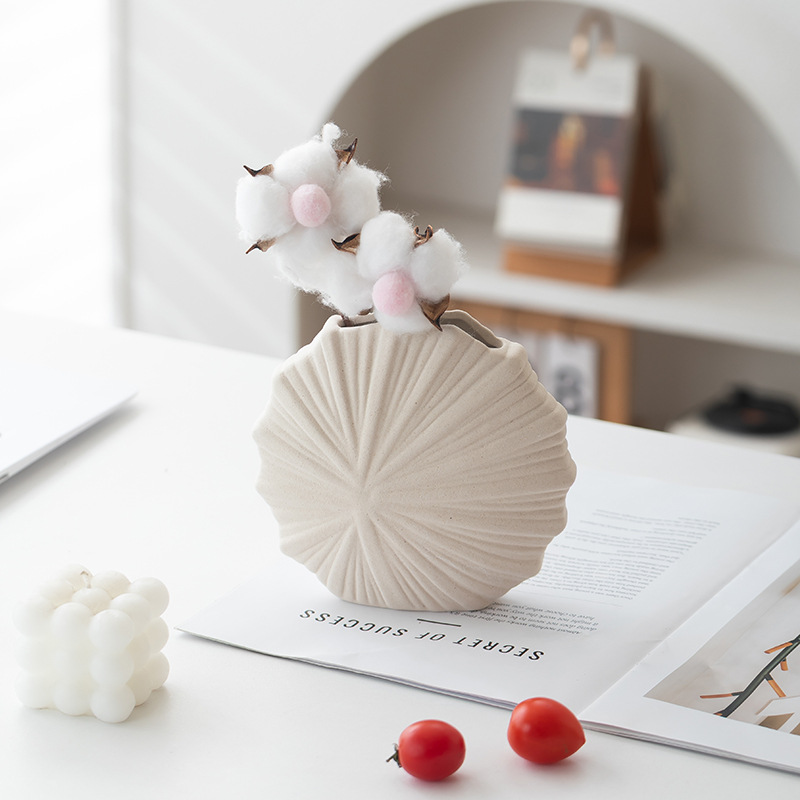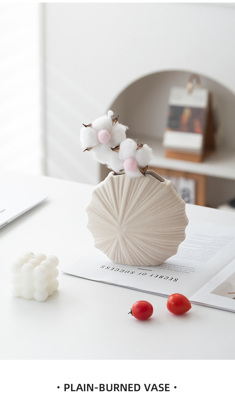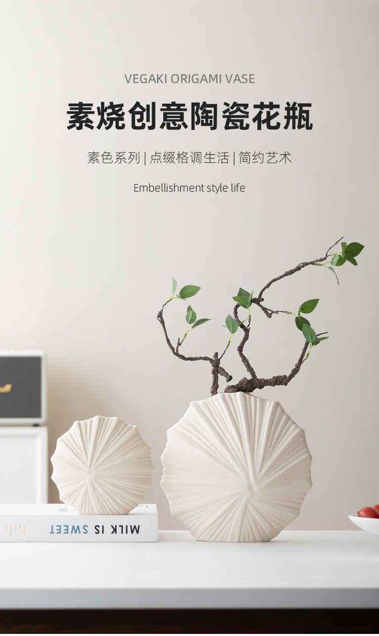 跨境简约欧式现代纯白圆形陶瓷花瓶素烧摆件桌面插花器软装饰鲜花