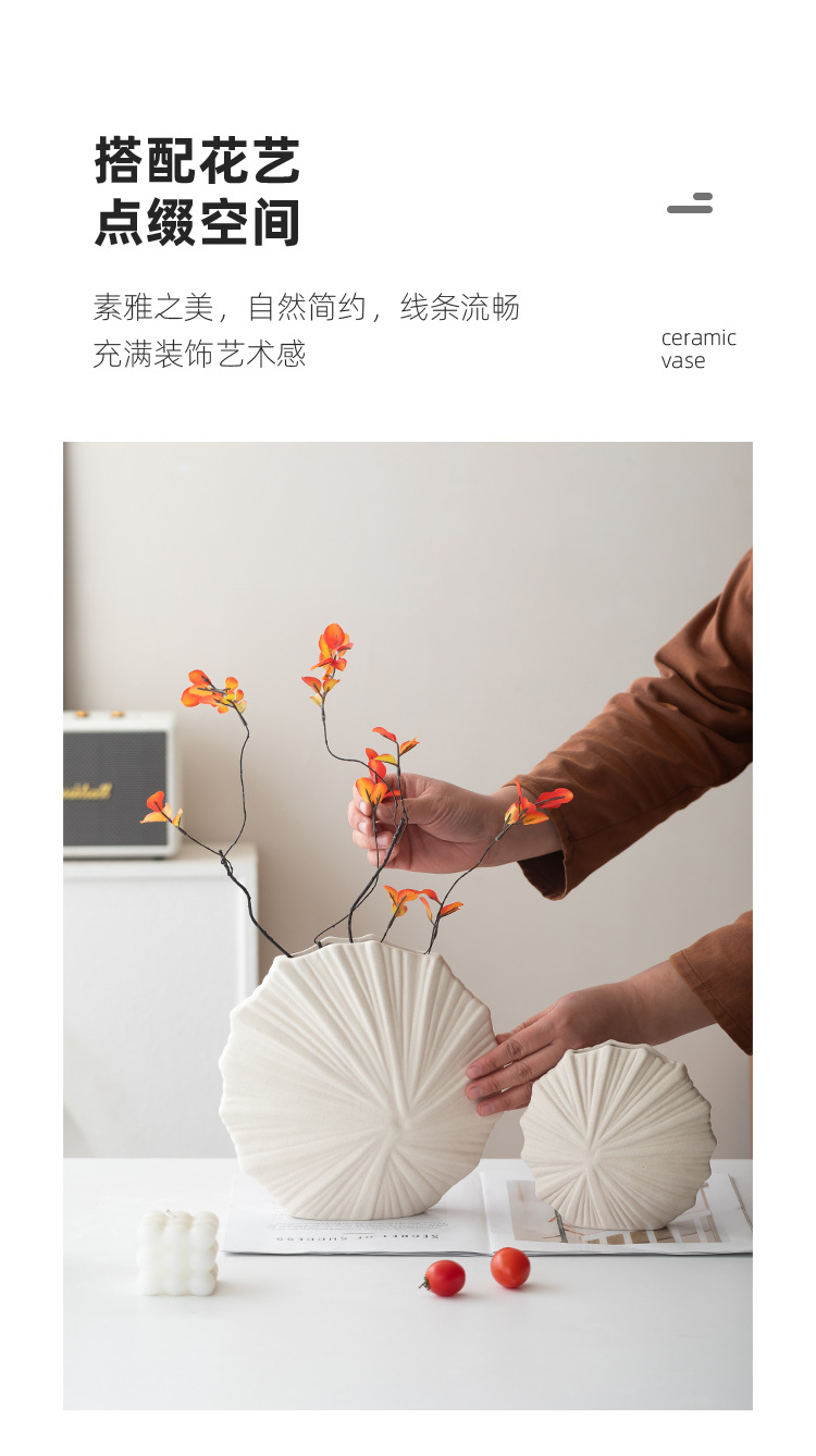 跨境简约欧式现代纯白圆形陶瓷花瓶素烧摆件桌面插花器软装饰鲜花 English | 投诉