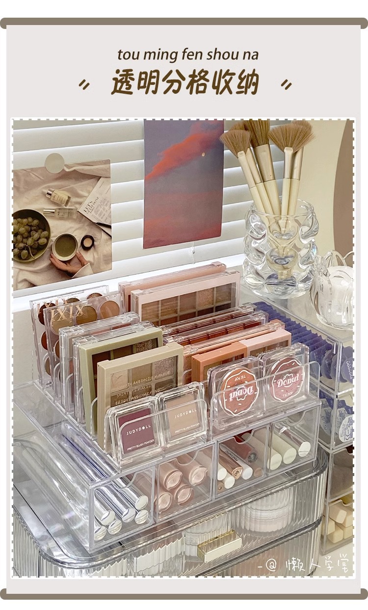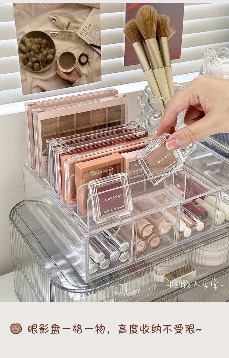 透明眼影盘收纳架粉饼收纳盒桌面抽屉分格彩妆口红化妆品置物架 投诉