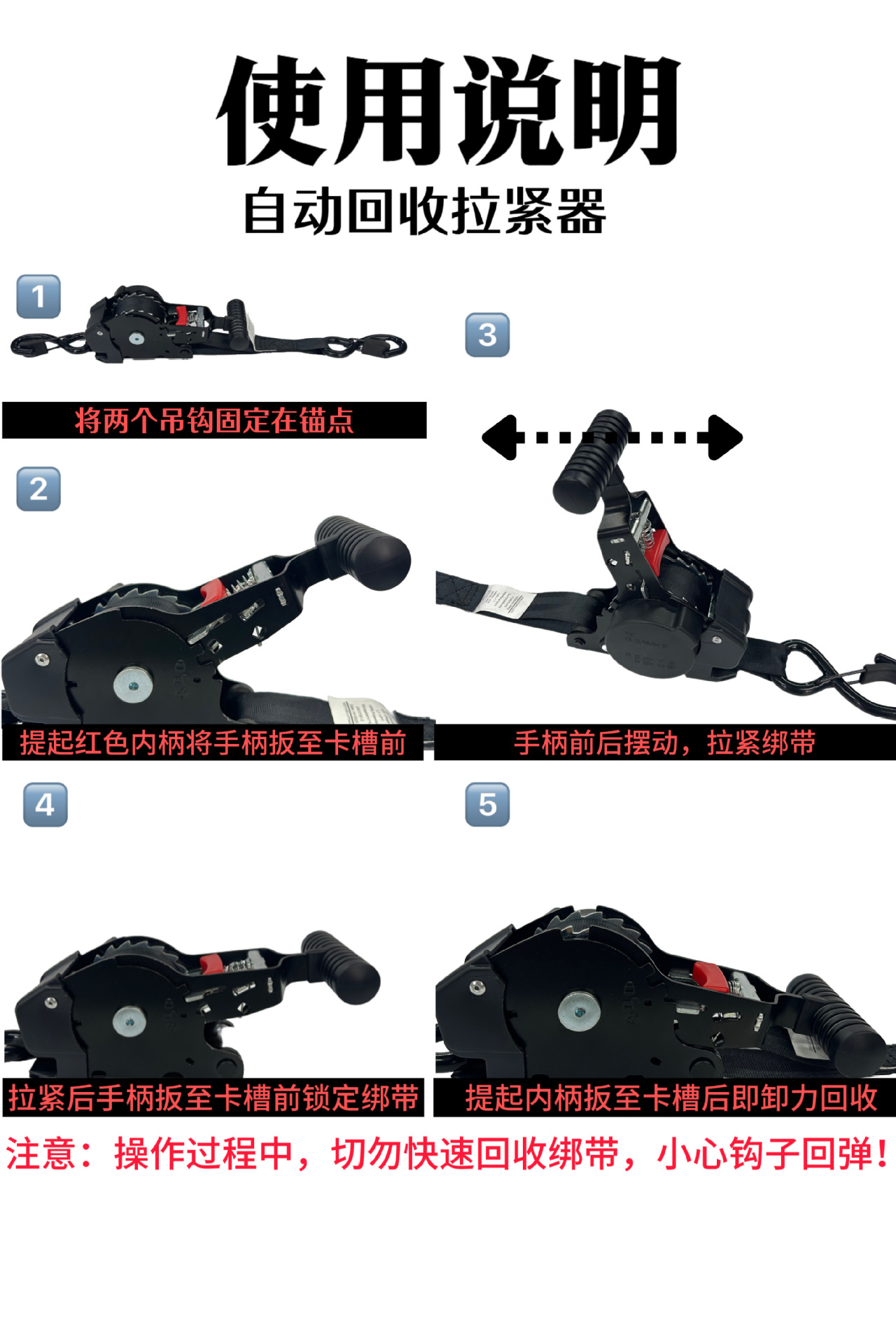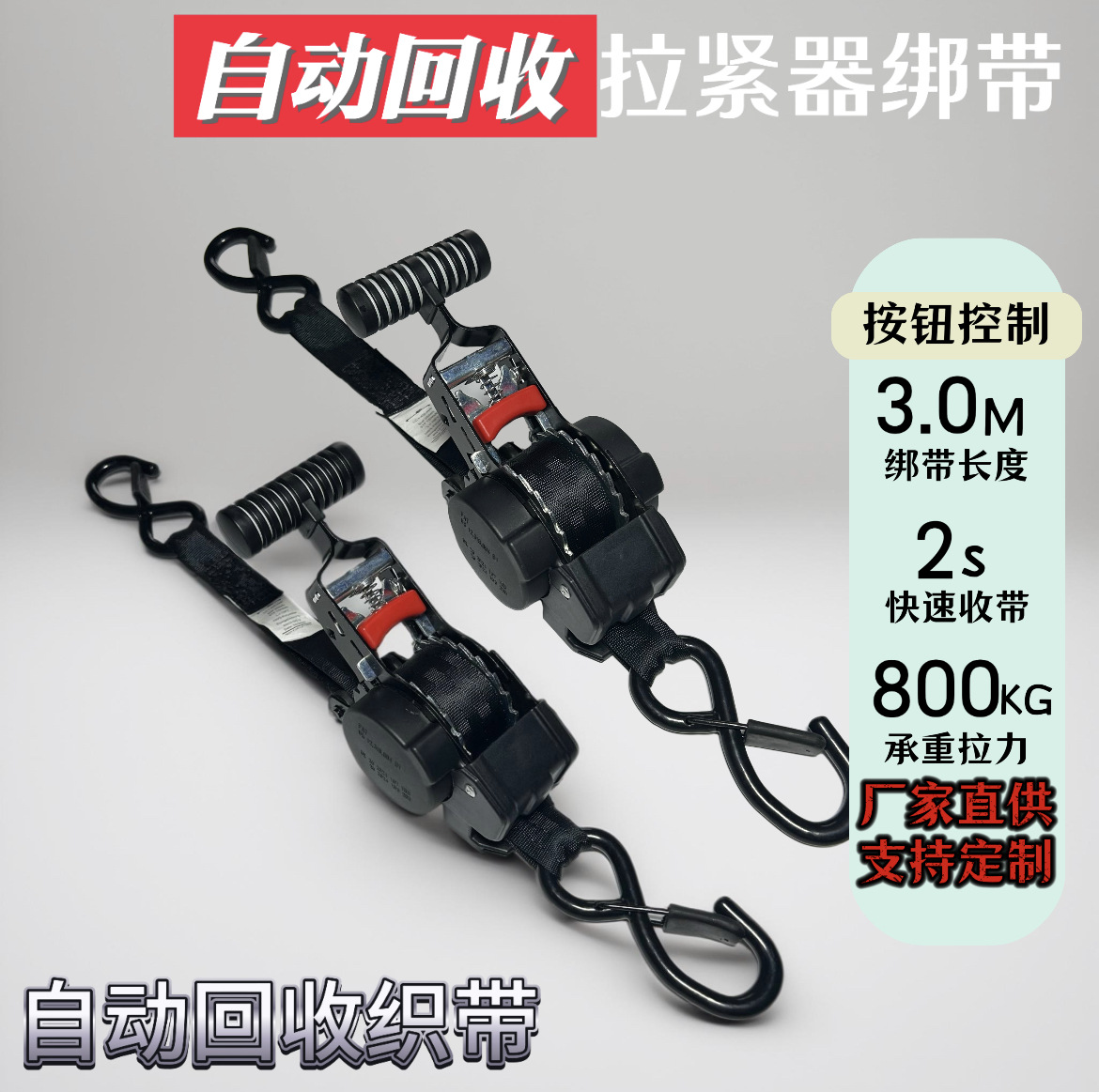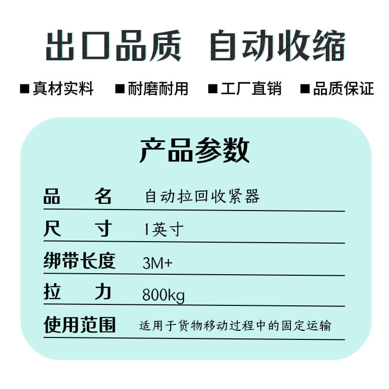 【工厂直销】亚马逊热销自动回收拉紧器汽车货物运输捆绑固定 投诉