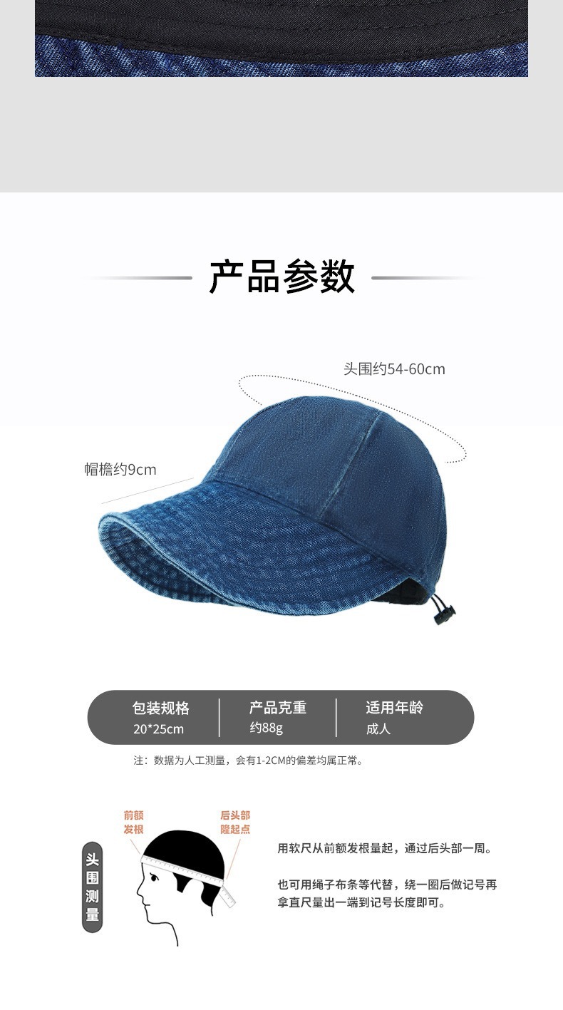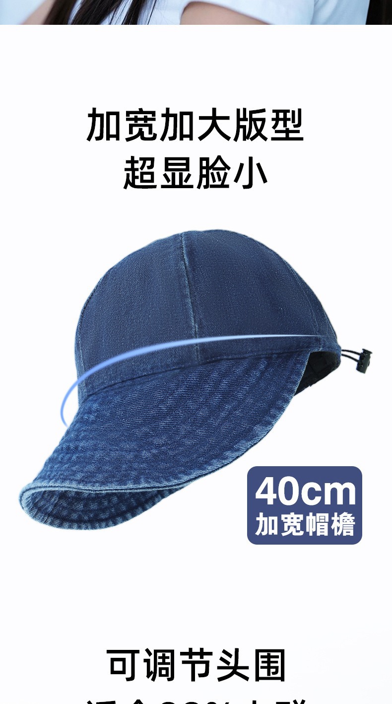 露丝水洗牛仔渔夫帽大檐显脸小防晒遮阳帽大头围鸭舌帽女 English | 投诉