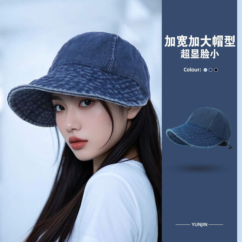 露丝水洗牛仔渔夫帽大檐显脸小防晒遮阳帽大头围鸭舌帽女