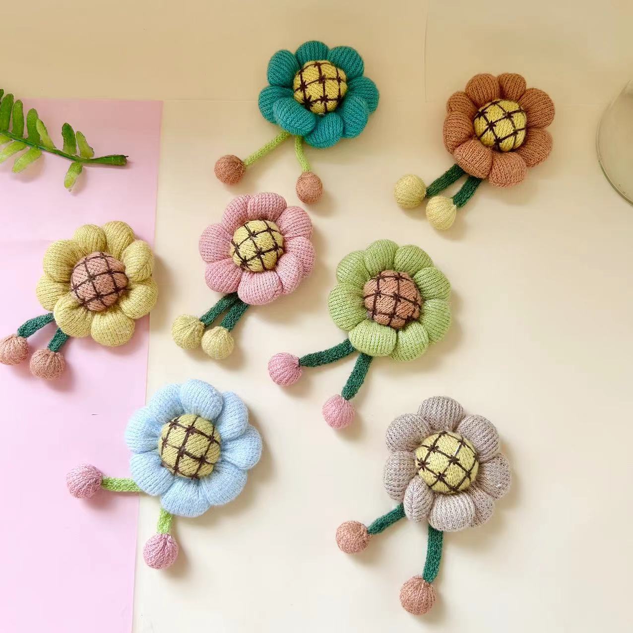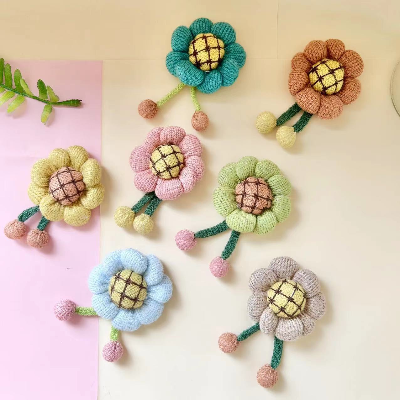秋冬韩版毛线向日葵花朵可爱包包配件钥匙扣饰品毛线装饰 English | 投诉