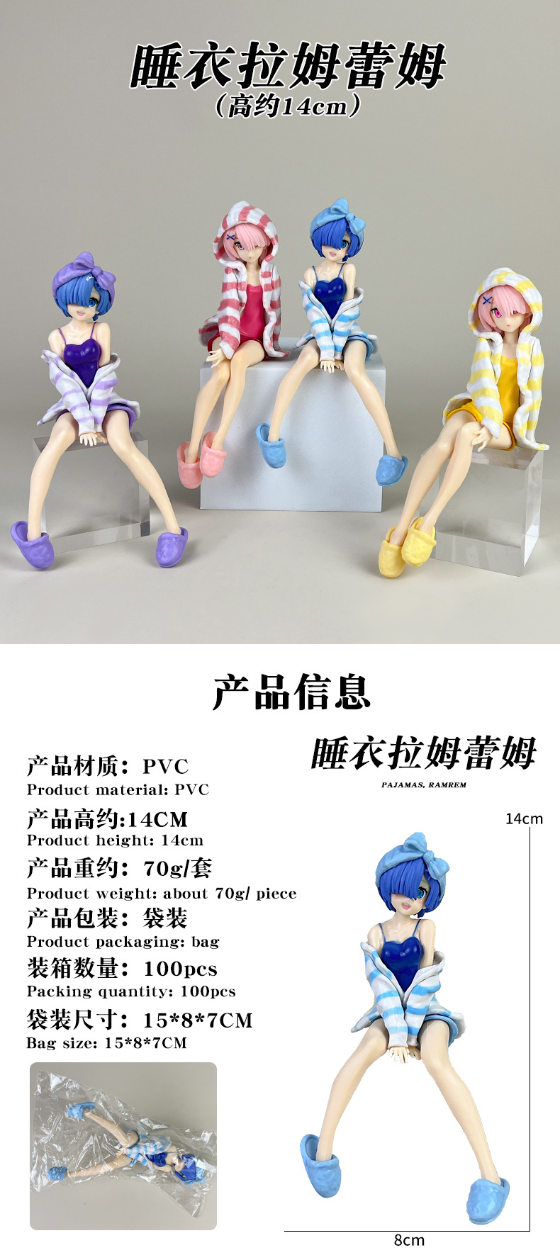 材质: PVC 品牌: 童年 动漫角色: 蕾姆 包装方式: 网袋 规格: 袋装,产品高度约14CM 适用年龄: 青少年(15-17岁) 产地: 大陆 是否有动漫形象: 是 货号: LM 是否有导购视频: 是 是否拼装: 是 是否专供外贸: 否 3C配置类别: 14岁以上的玩具 是否跨境出口专供货源: 是 重量: 0.5 kg/个