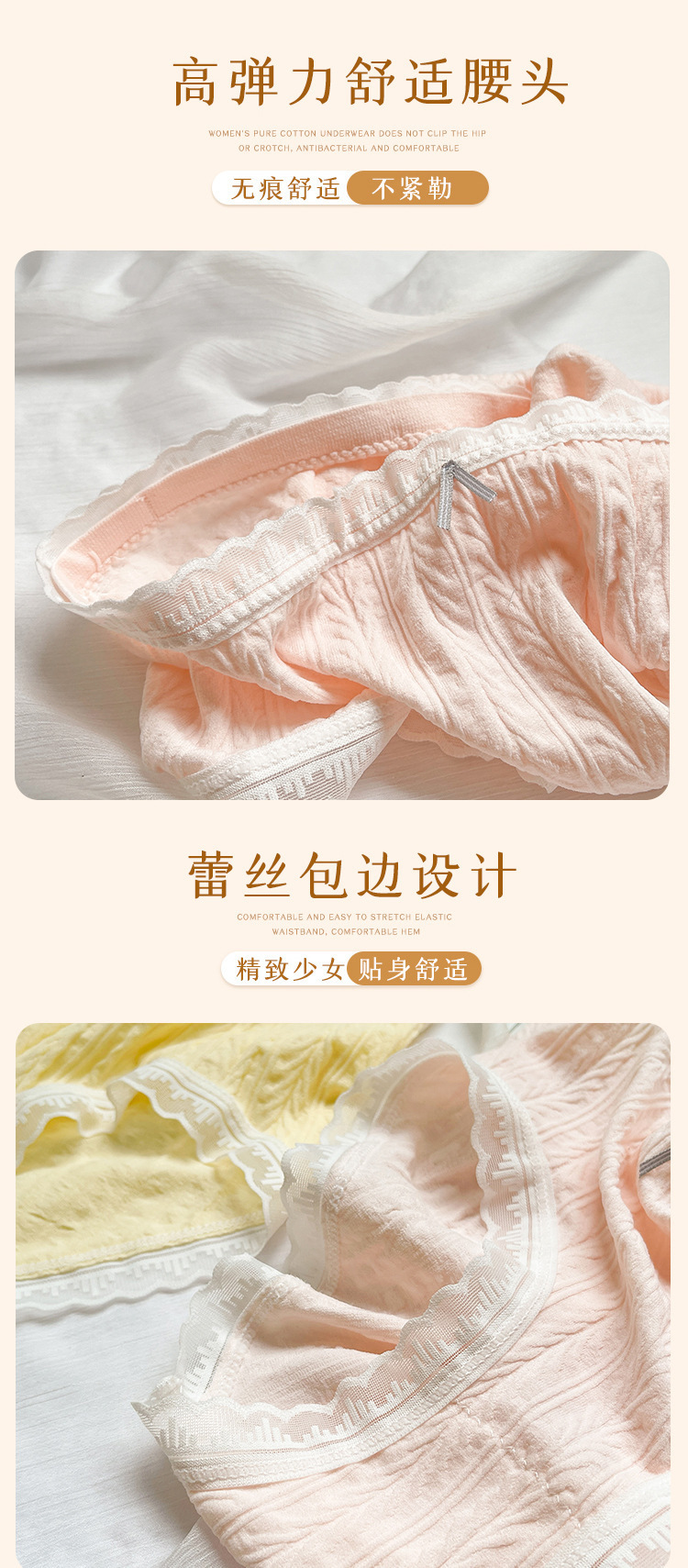 日系少女内裤蕾丝花边棉档亲肤透气高弹三角女【独立包】少女风 English | 投诉