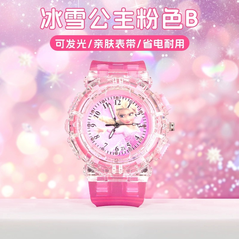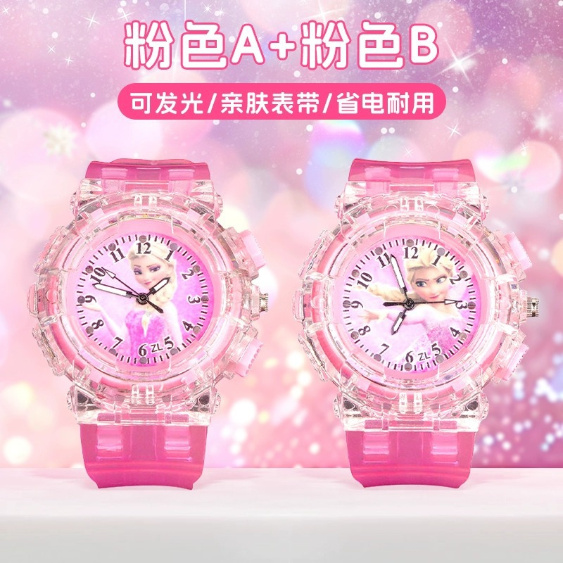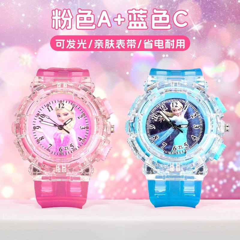 爱莎公主儿童手表女孩艾莎发光玩具宝宝电子表幼儿园3岁到6岁女童