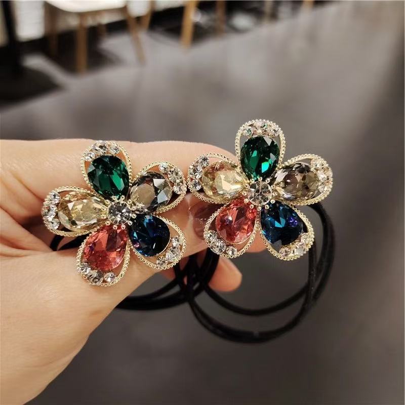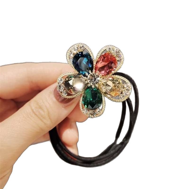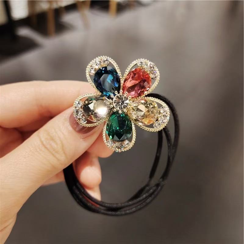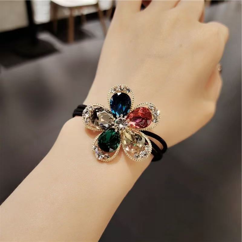 韩版新款闪钻花朵头绳高级少女扎马尾气质发绳洋气丸子头发圈皮筋