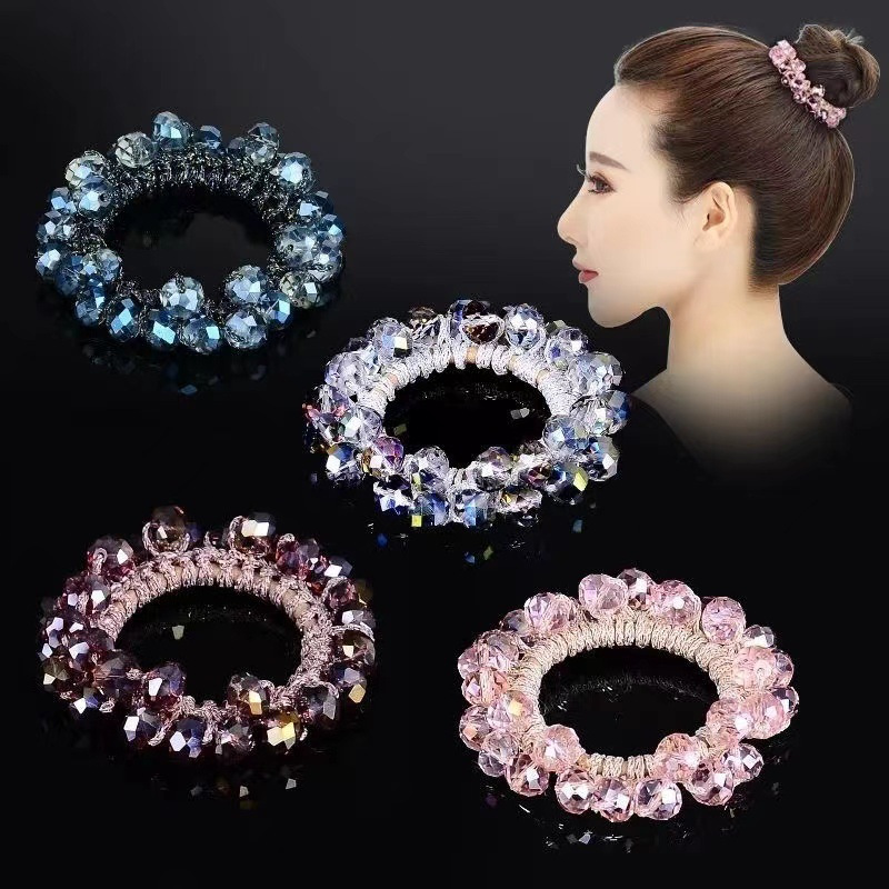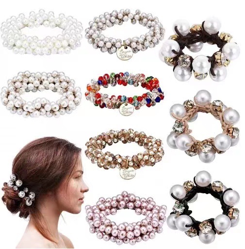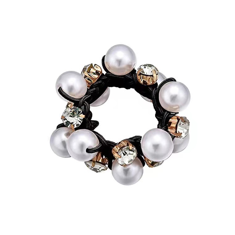 跨境亚马逊水晶珍珠发圈女简约气质发绳韩国网红皮筋扎头发绳批发
