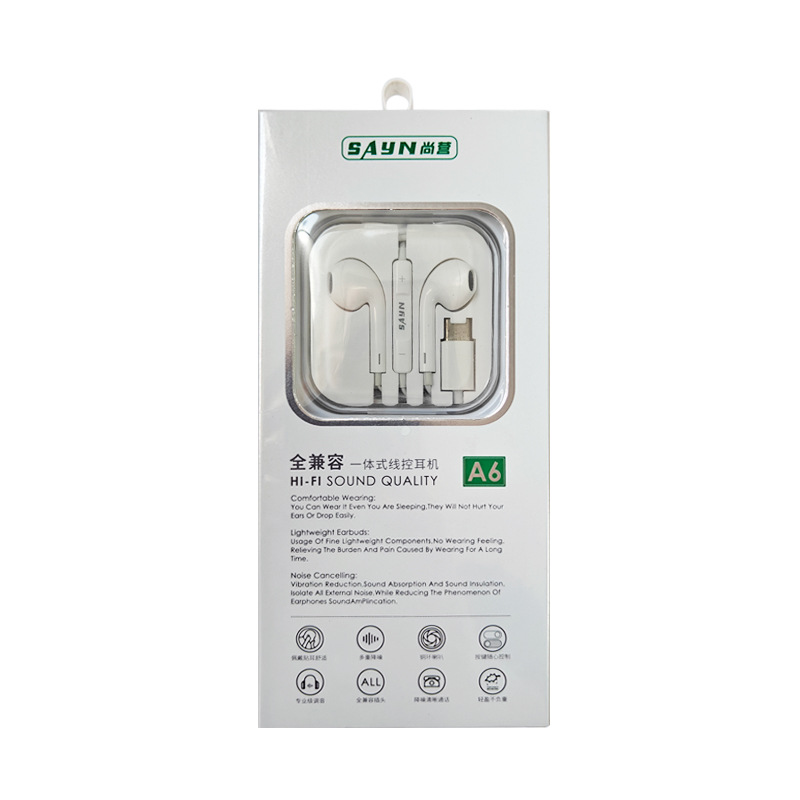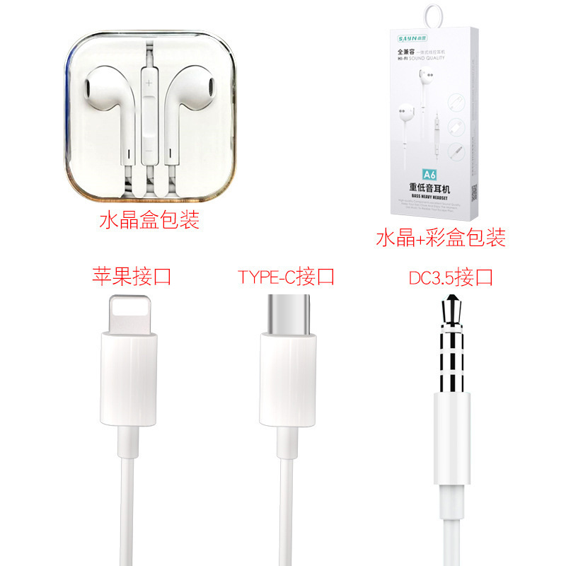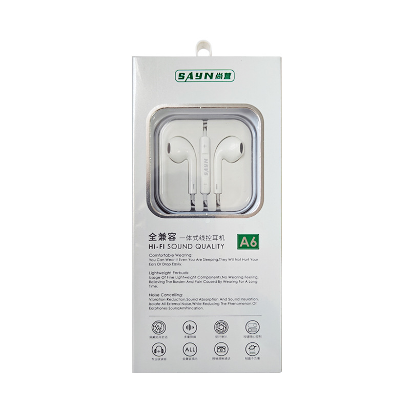厂家直销尚营A6耳机适用于苹果华为3.5接口手机入耳式线控 耳机