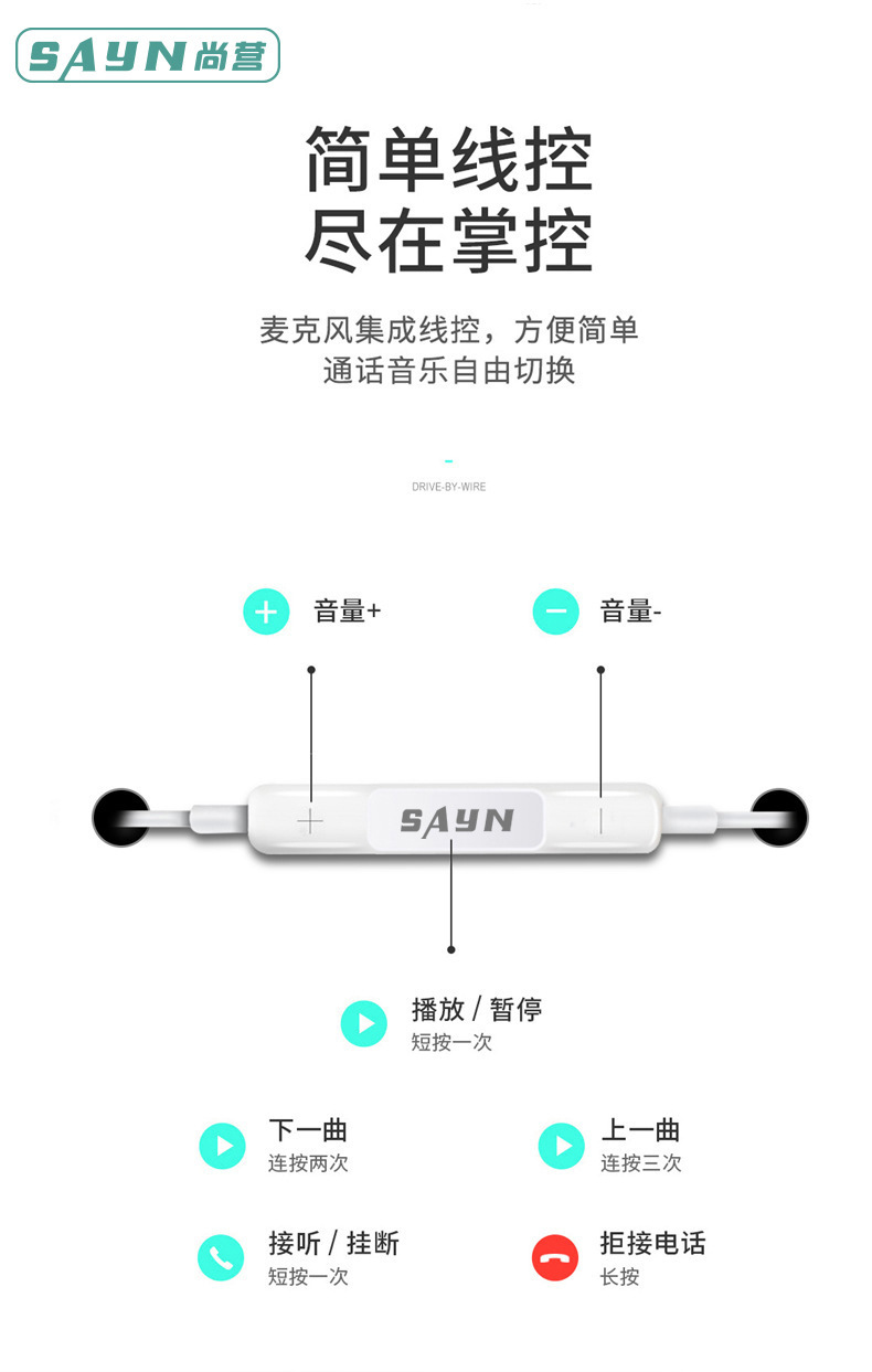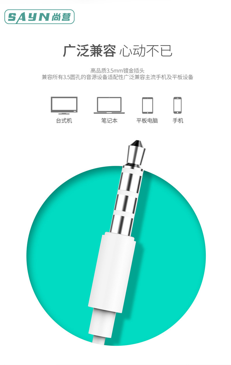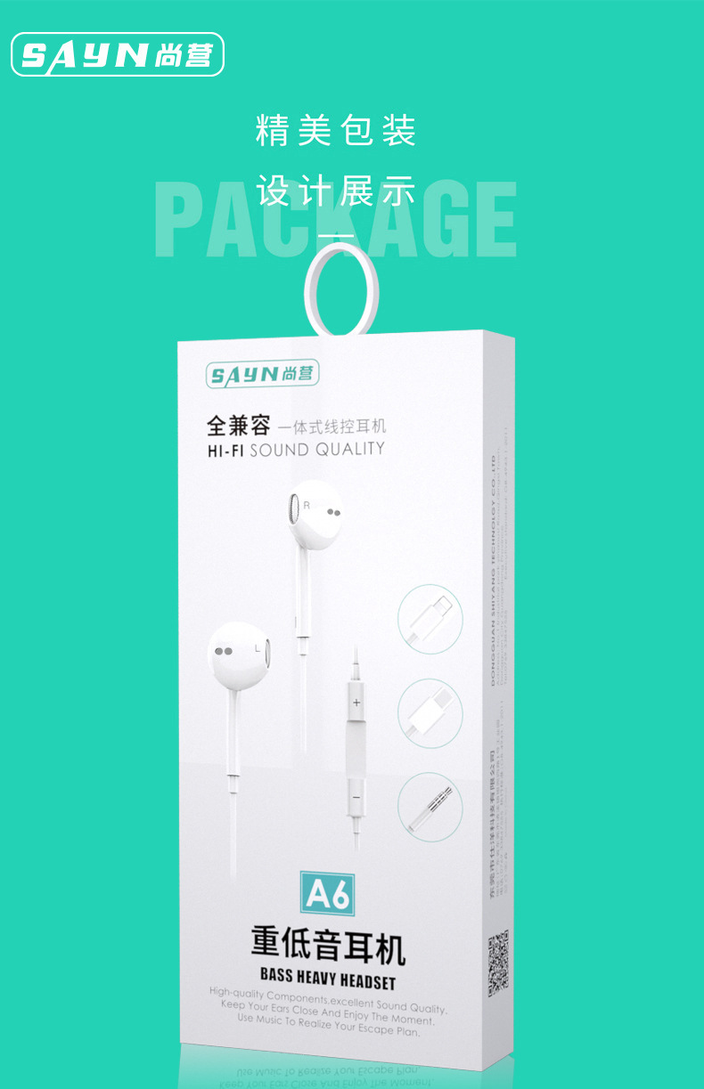 品牌: SAYN 佩戴方式: 耳塞式 耳机类别: 有线 是否无线耳机: 有线耳机 插头类型: 直插型 耳机输出音源: 通用 插头直径: 3.5 支持订制: 支持 系列: 国潮风 货号: A6 形象: 半入耳式 型号: A6 上市时间: 2023 货源类别: 现货 有无麦克风: 有 频响范围: 有线 导线长度: 1200MM 喇叭直径: 10里 耳塞/耳罩材质: 塑胶 耳机线材质: TPE 重量: 0.455 kg/副