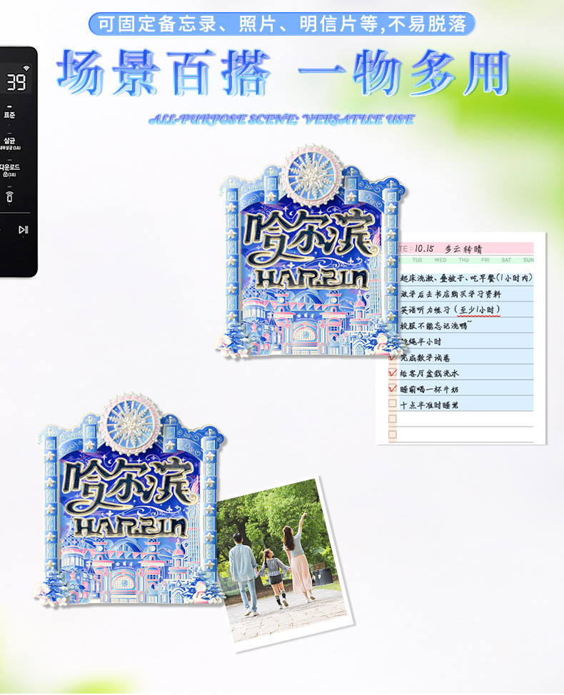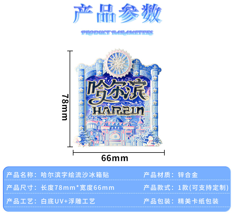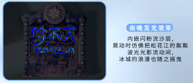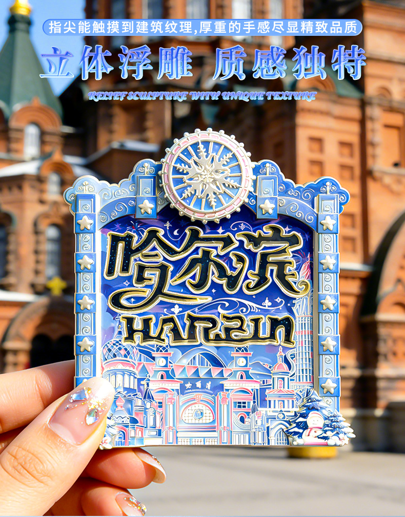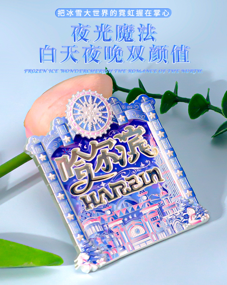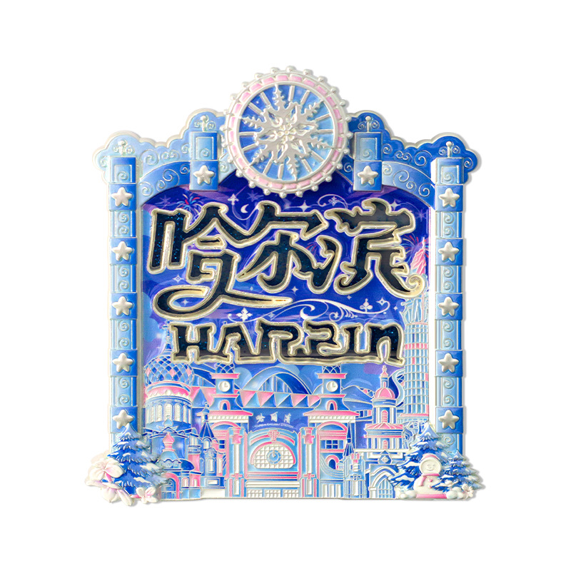哈尔滨冰箱贴夜光流沙金属文创意纪念品中国城市旅游金属冰箱贴