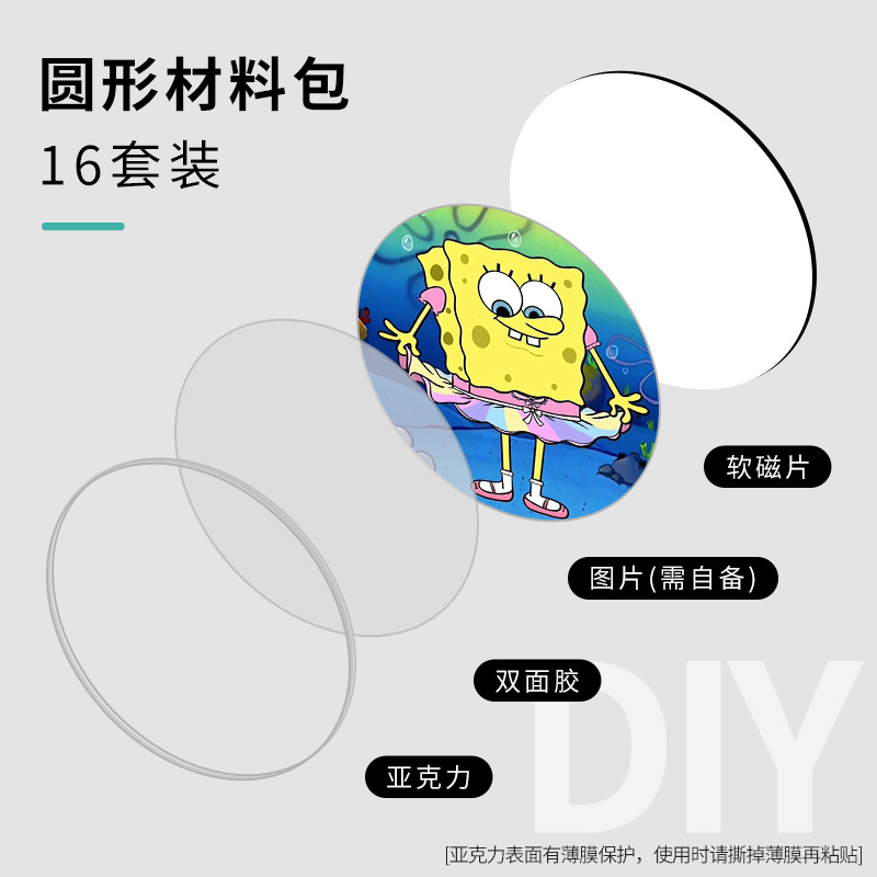 | 冰箱贴DIY(10个)5厘米*5厘米,圆形(亚克力+软磁+高透双面胶) | ¥1600 | 2998件可售 |