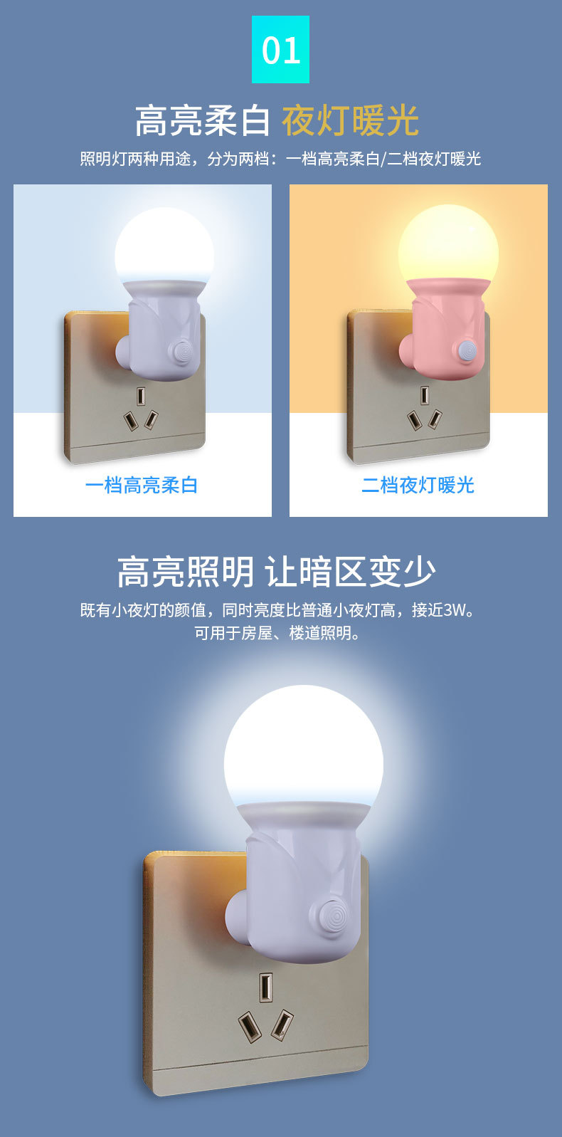 柯丽雅私模即插式手动开关照明灯卧室客厅阳台照明小夜灯床头灯 English | 投诉