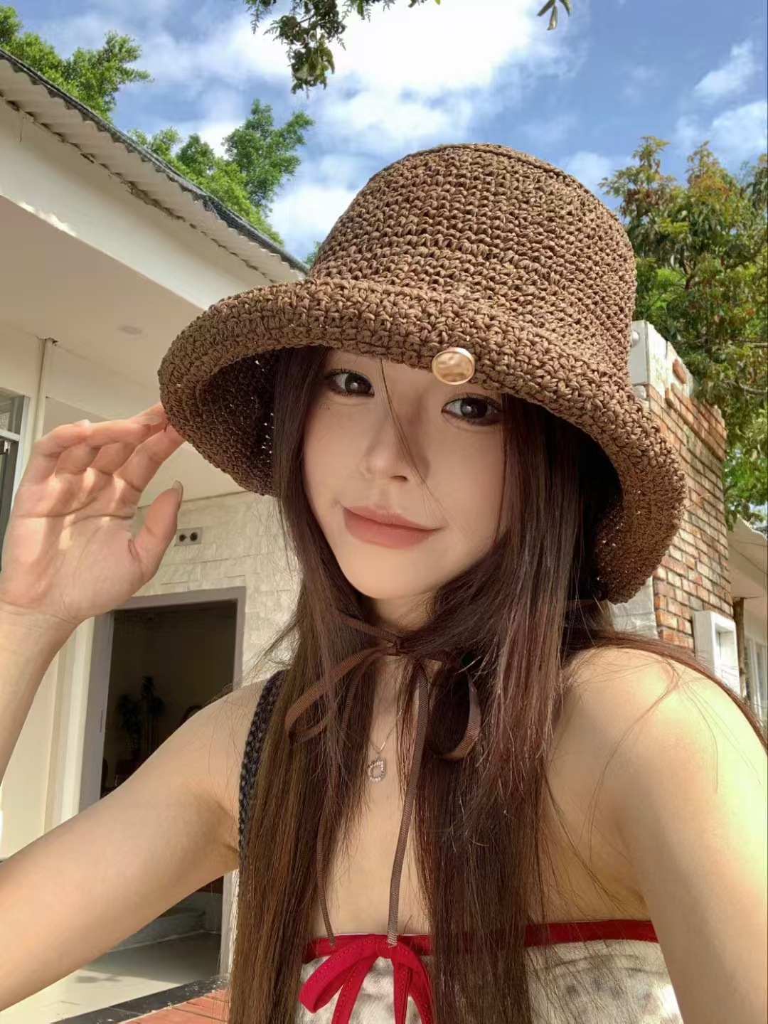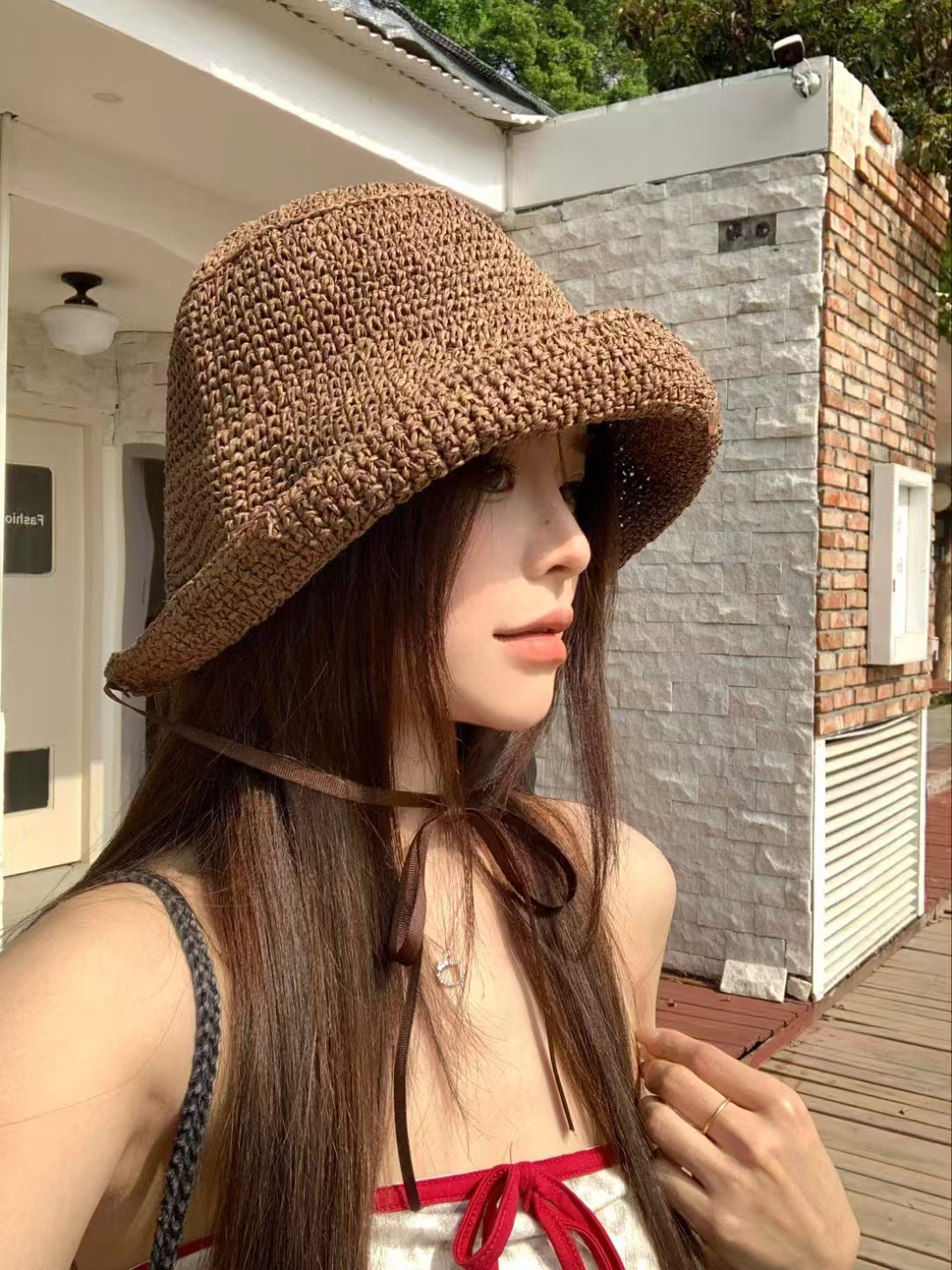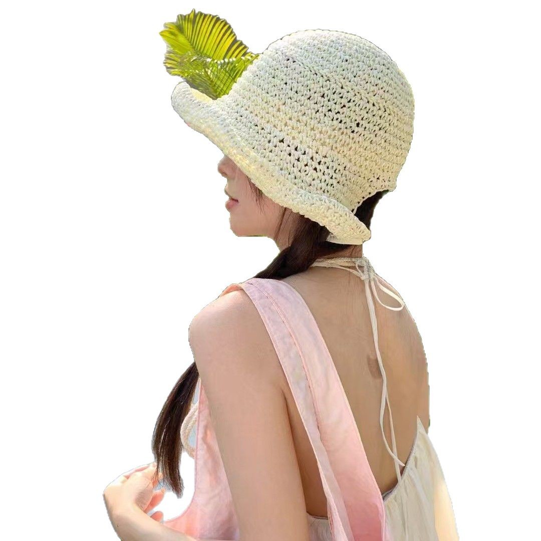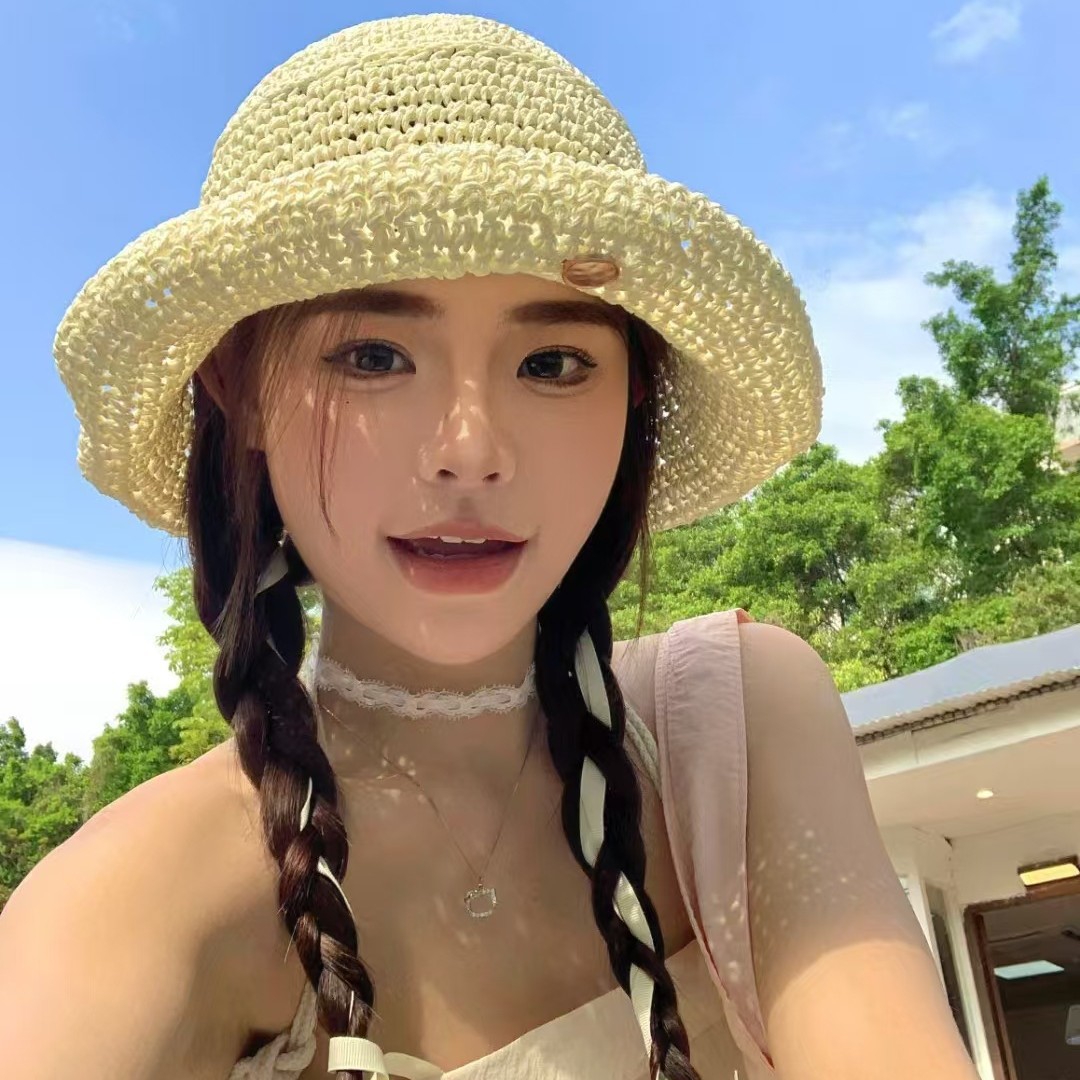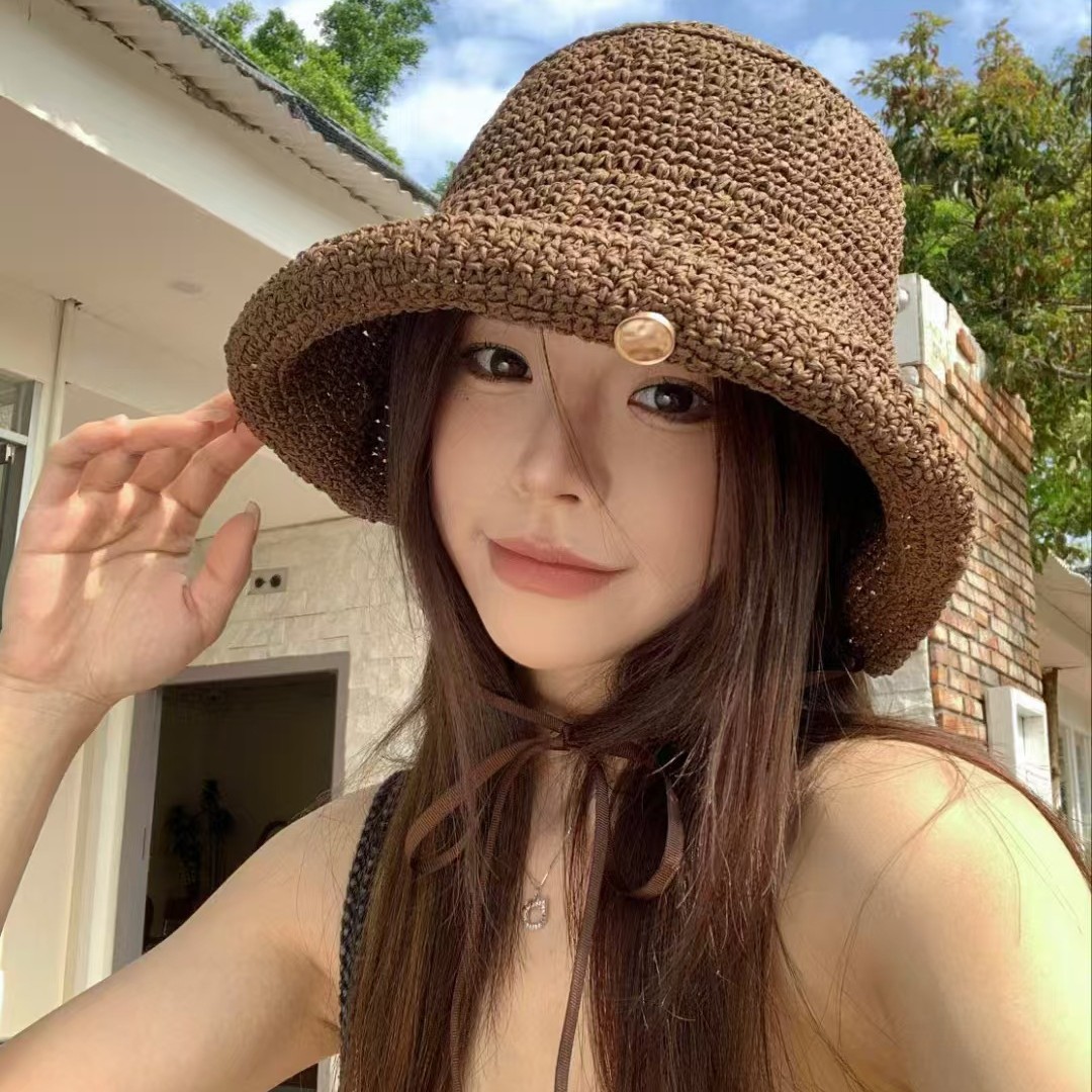 复古咖色镂空编织草帽女2025年春新款大头围沙滩水桶帽子防晒盆帽 English | 投诉