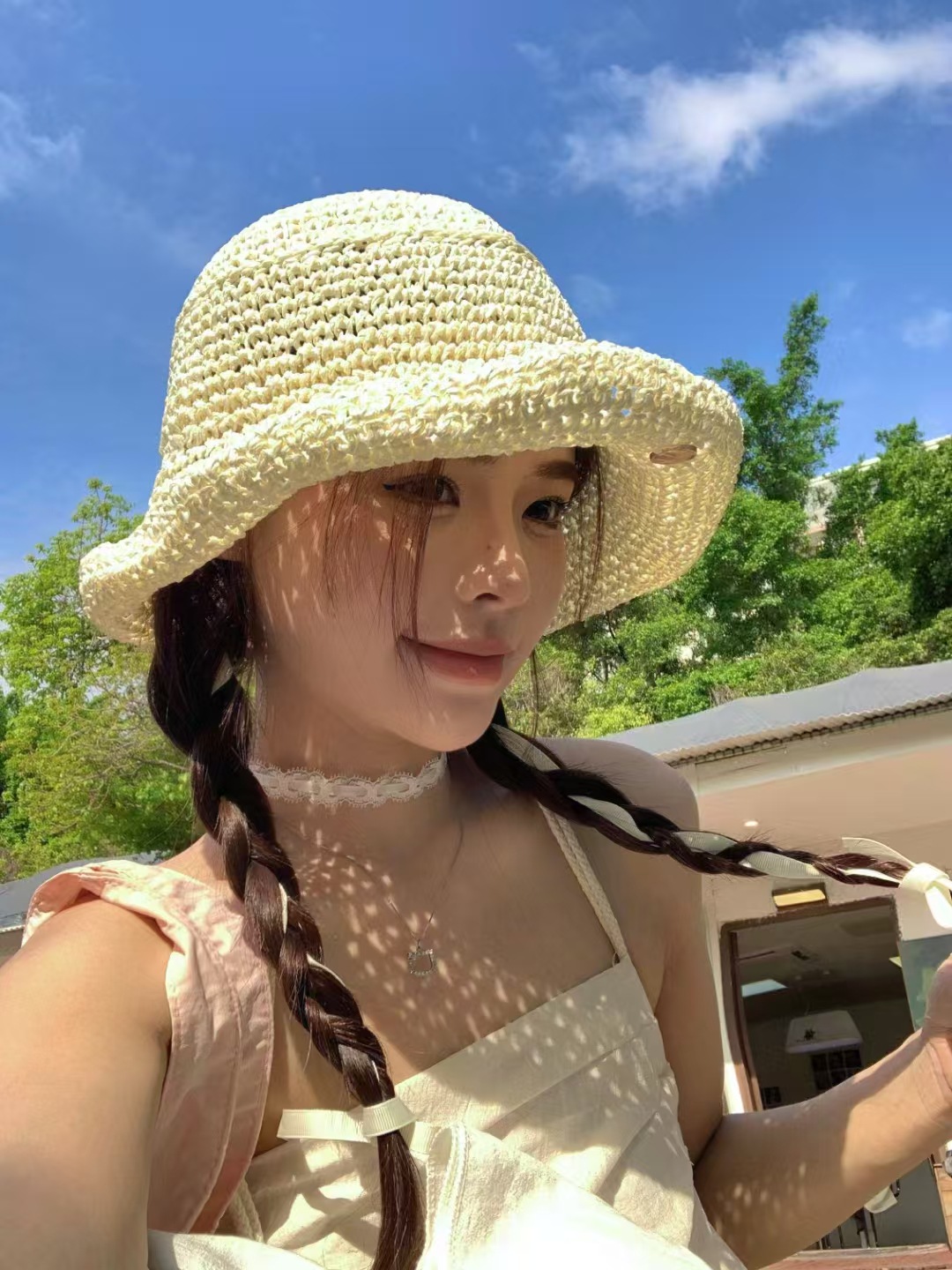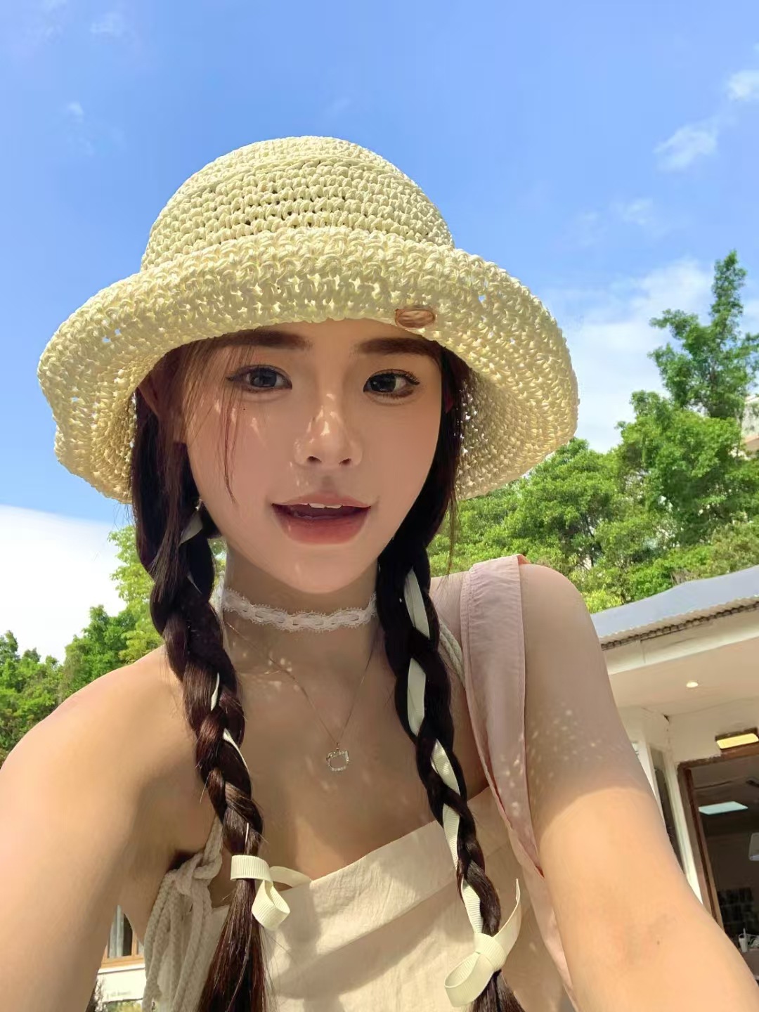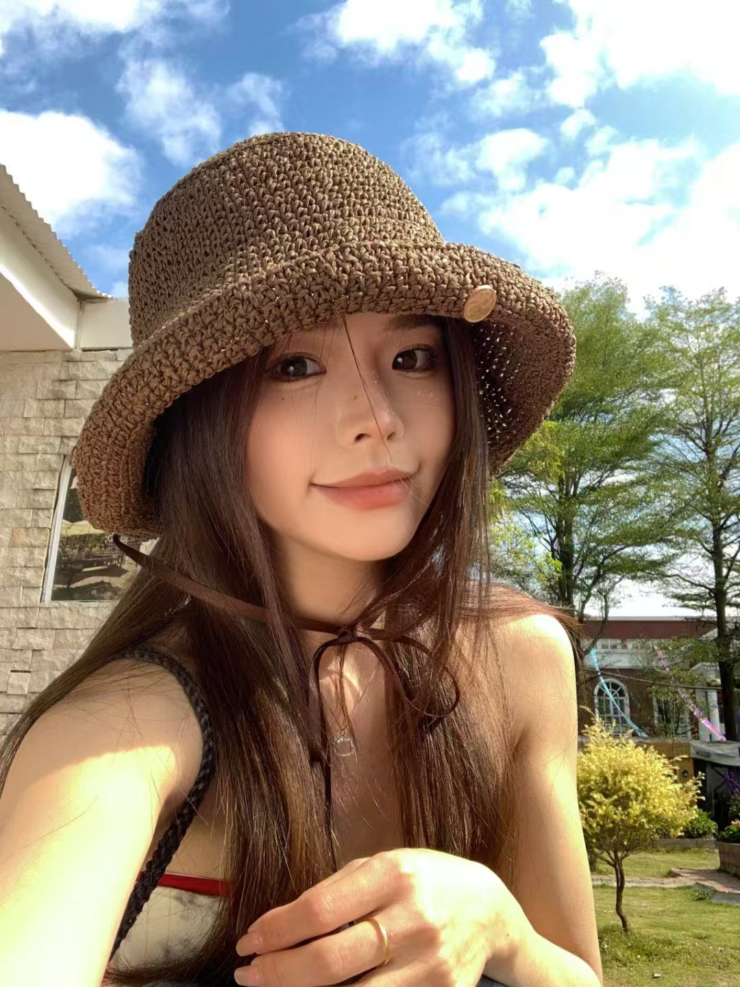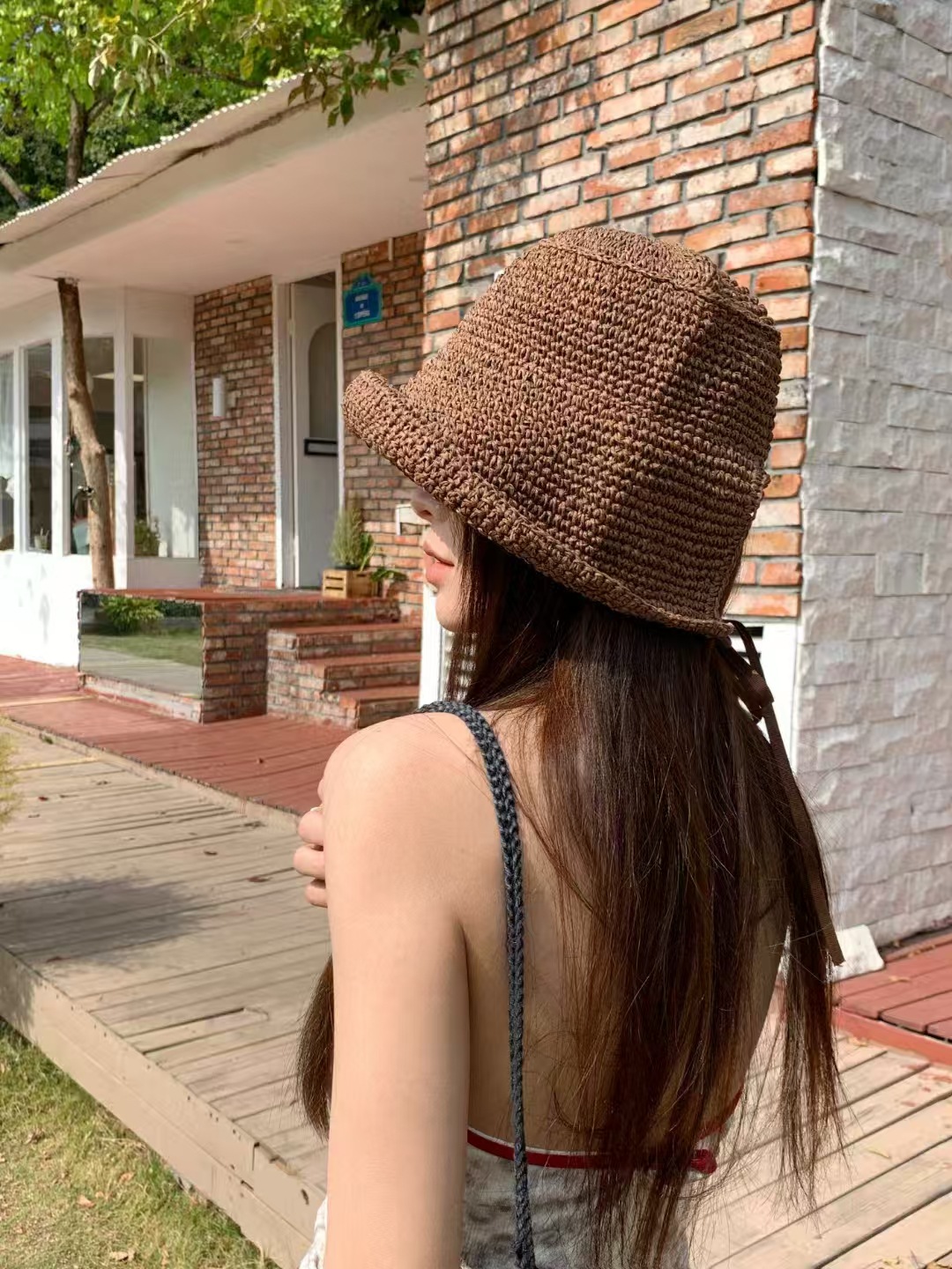 复古咖色镂空编织草帽女2025年春新款大头围沙滩水桶帽子防晒盆帽 English | 投诉